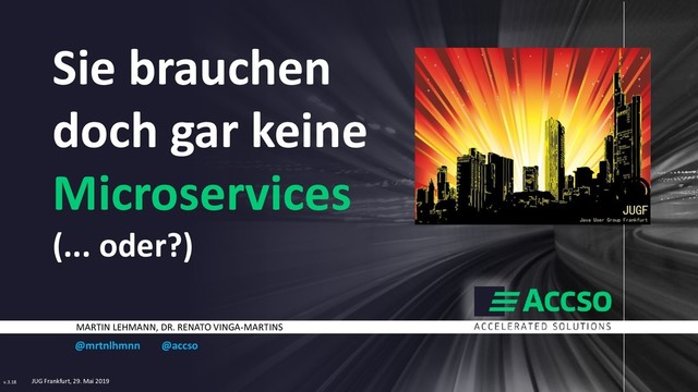 Vortrag, zusammen mit Renato Vinga-Martins, Java User Group Frankfurt, 29. Mai 2019