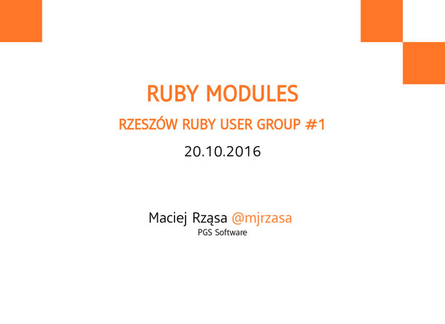 Uses of Ruby modules. Presentation given during the first meeting of Rzeszów Ruby User Group.