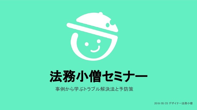 事例から学ぶトラブル解決法と予防策 法務小僧セミナー 2019/05/25 デザイナー法務小僧