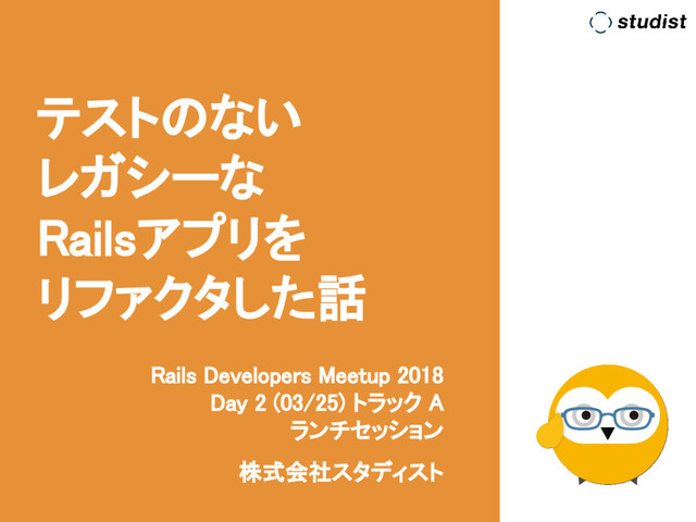 For Rails Developers Meetup 2018 : Day 2 (03/25) Track A Lunch Session. Presented by 株式会社スタディスト開発部.