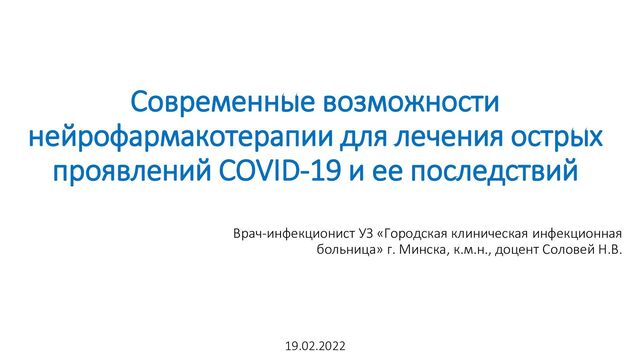 при COVID-19 • ретроспективное когортное исследование • 3401 пациент с COVID-19, получавший СИОЗС (59,8% женщины, средний возраст 63,8±18,1 лет): • 470 – только флуоксетин • 481 – флуоксетин или флувоксамин • 2898 – другие СИОЗС • 6802 пациента группы контроля, подобранных по схожим характеристикам для экспериментальной группы • риск смерти статистически значимо снижался у пациентов, получавших: • флуоксетин (9,8% vs 13,3%, ОР 0,72, 95% ДИ 0,54-0,97) • флуоксетин или флувоксамин (10,0% vs 13,3%, ОР 0,74, 95% ДИ 0,55-0,99) • не обнаружено статистически значимого влияния приема любого другого СИОЗС, помимо флуоксетина или флувоксамина, на риск неблагоприятного исхода (15,4% vs 17,0%, ОР 0,72, 95% ДИ 0,84-1,0) Oskotsky T. et al. JAMA Network Open 2021; 4:e2133090