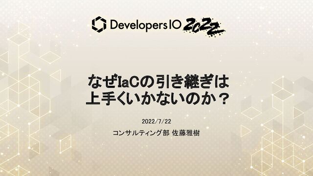 なぜIaCの引き継ぎは 上手くいかないのか? 2022/7/22 コンサルティング部 佐藤雅樹