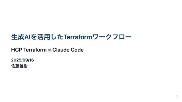 生成AIを活用したTerraformワークフロー HCP Terraform × Claude Code 2025/09/16 佐藤雅樹 1