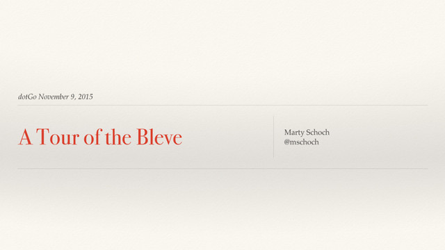 Nearly two years ago we set out to build Bleve, an open-source full-text search library for Go. Since then we've worked hard to build not just the code, but also the community around the project. We'll start with a brief introduction to the capabilities of the library. Then we'll take a tour of the unique ways the community has shaped the project. These vignettes will guide our technical dive into select parts of the Bleve project.