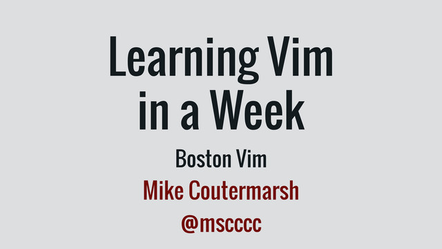 Learning Vim in a Week Mike Coutermarsh @mscccc Boston Vim