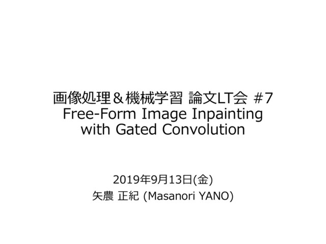 画像処理&機械学習 論文LT会 #7 Free-Form Image Inpainting with Gated Convolution 2019年9月13日(金)