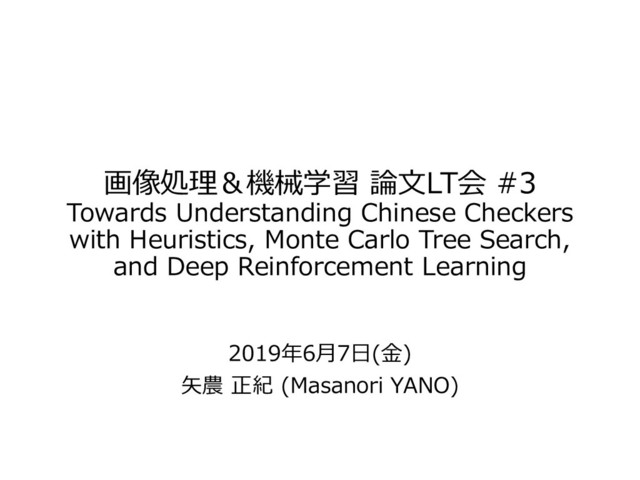 画像処理&機械学習 論文LT会 #3 Towards Understanding Chinese Checkers with Heuristics, Monte