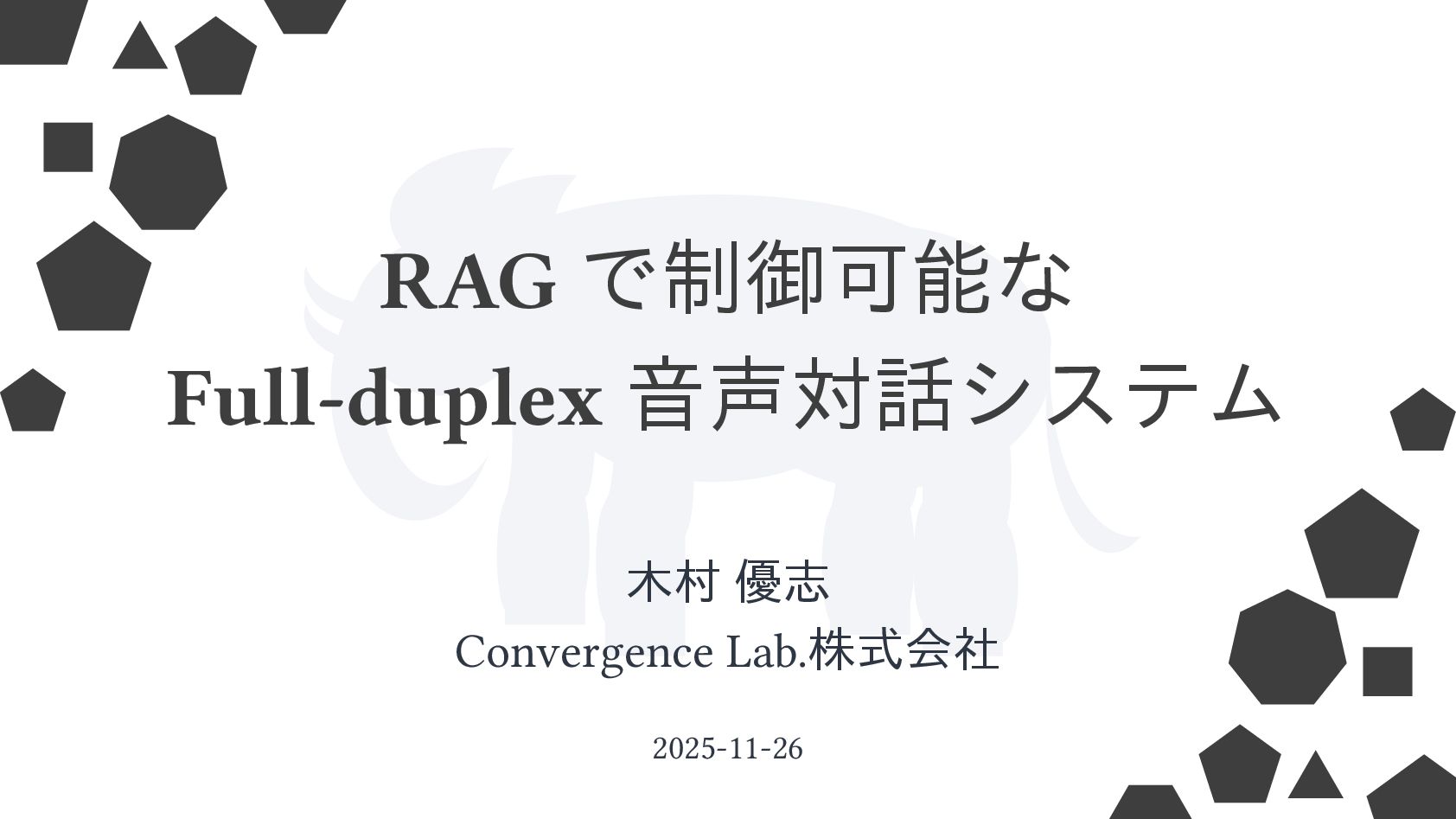 RAG で制御可能な Full-duplex 音声対話システム 木村 優志 Convergence Lab.株式会社 2025-11-26