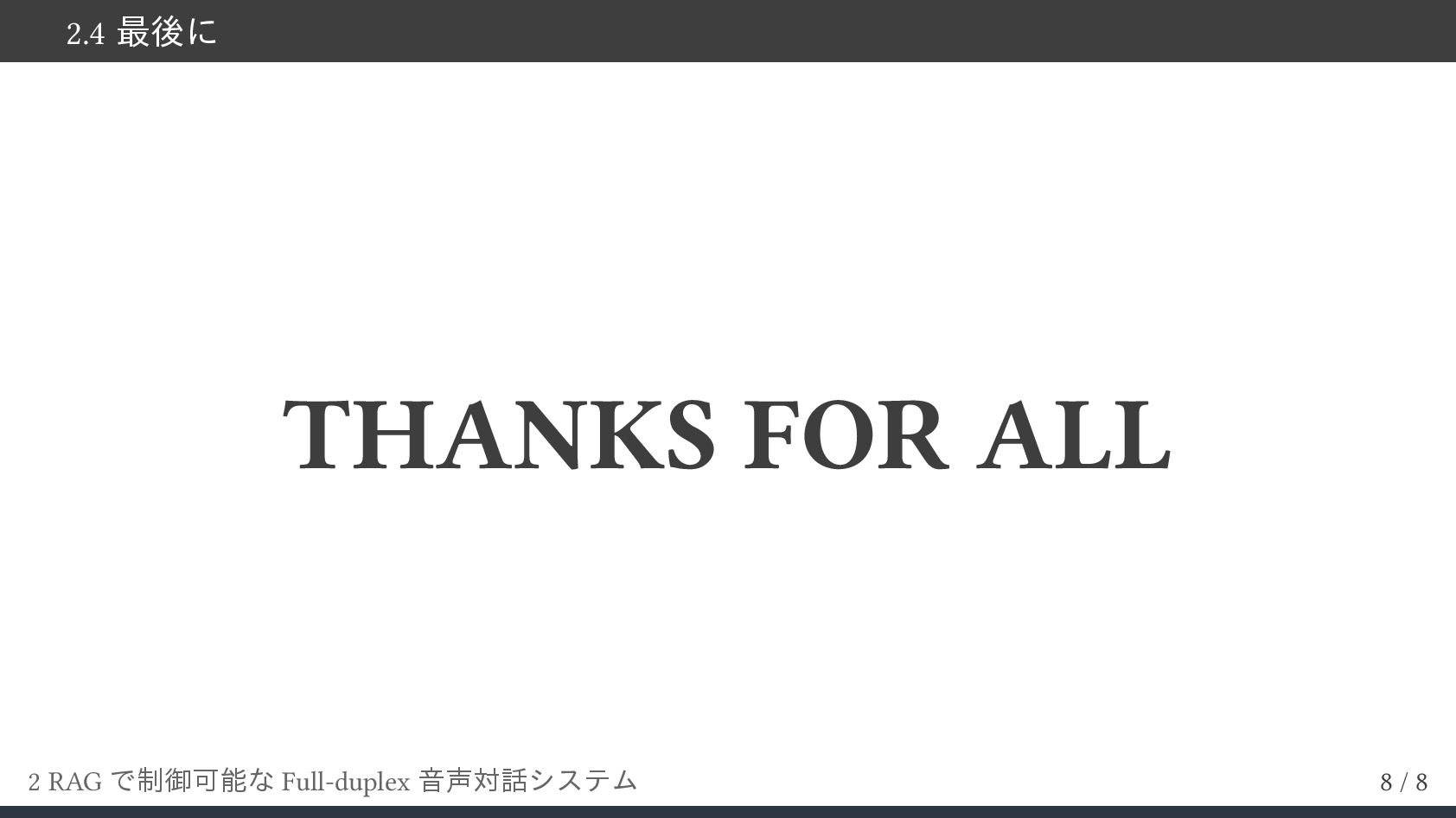 2.4 最後に THANKS FOR ALL 2 RAG で制御可能な Full-duplex 音声対話システム