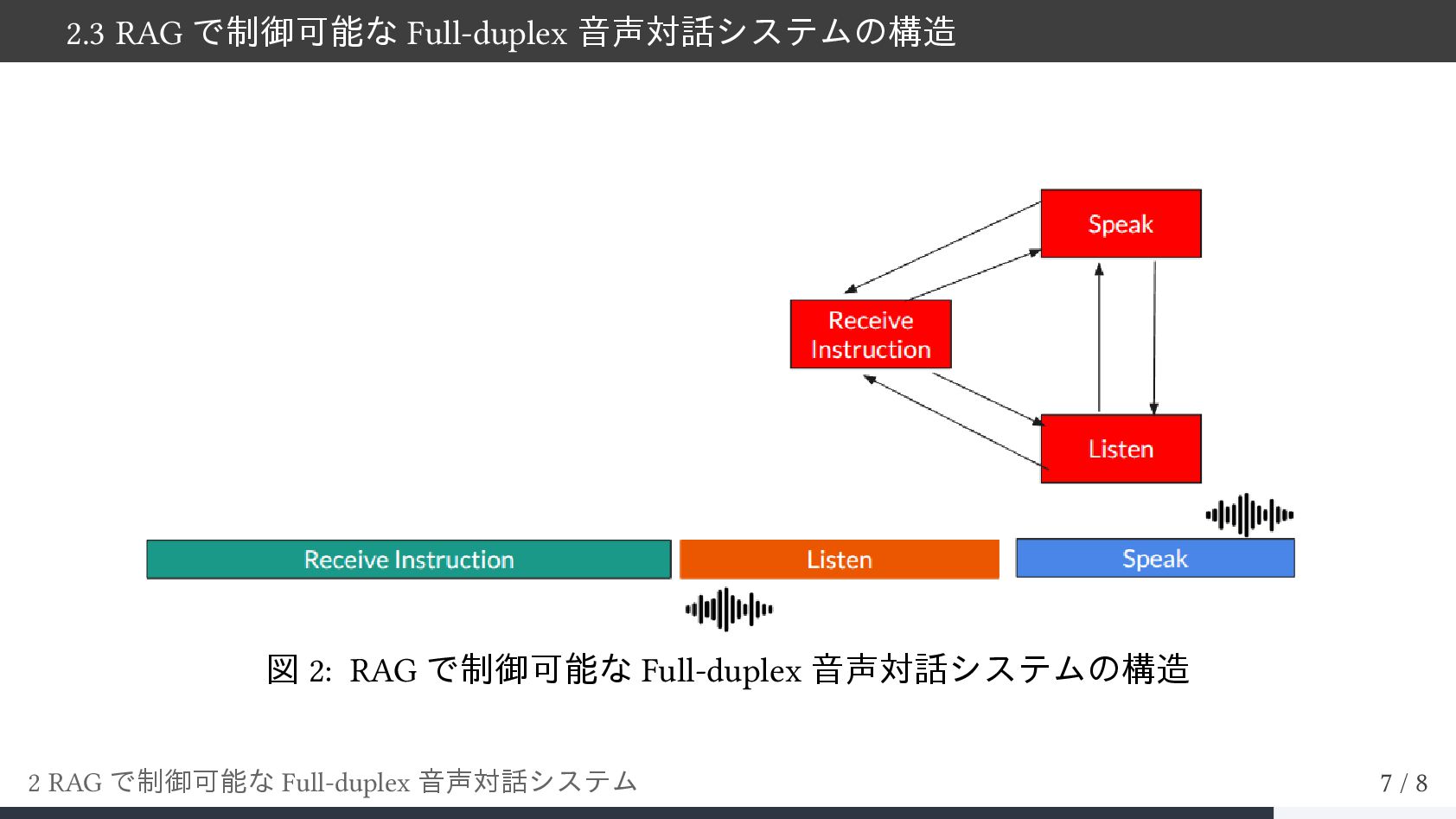 音声対話システムの構造 2 RAG で制御可能な Full-duplex 音声対話システム 7 / 8