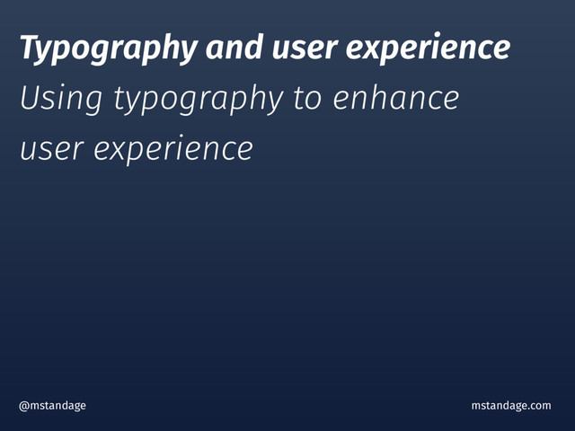 Typography is much more than choosing typefaces and the visual appearance of a page. It is the primary medium by which we communicate information to our users on the web. In this session, I will look at ways in which we can use typographic design to support people's understanding and improve their chances of finding content that is of interest to them.