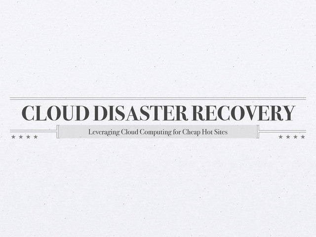 Cloud computing holds a lot of promise for these companies due to the on-demand nature of resources available. Come learn how cloud computing (utilizing AWS) can offer those businesses a cost-effective method of continuing operations even if a worst-case scenario does afflict them. Discussion of a real-life scenario will be covered and the math and pros/cons of the plan will be reviewed.