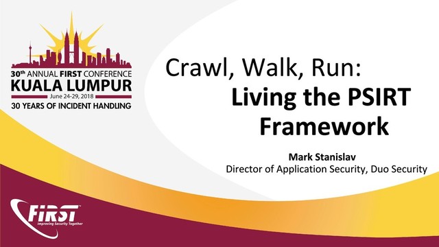 This presentation will detail the journey, hurdles, and outcomes of using the PSIRT Framework to take a hard look at formalizing an existing application security team's efforts into a more holistic program. Topics will include executing a program gap analysis, deciding on how to re-mediate identified gaps, organizing a PSIRT across functional teams, processes we utilize, execution of a product security advisory process, and other parts of our organization's implementation of the framework to guide our program maturity.