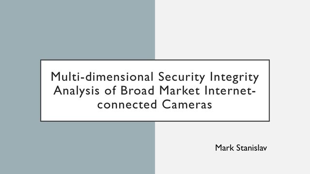 This study used a quantitative approach with a cross-sectional, descriptive analysis survey design to examine the adherence of 40 internet-connected cameras against three IoT security frameworks to determine their overall security posture. Relevant literature was reviewed showing that prior studies in a similar regard had limitations, such as a small sample population, singular market segment focus, and/or a lack of validation against formalized frameworks. This study resulted in a uniform and multi-dimensional set of findings with supporting evidence, leading to a mapping against selected IoT security frameworks that was then quantitatively analyzed for their relative adherence as individual cameras, across market segments, and for the overall sample population. The resultant data provides numerous pervasive gaps in the current state of IoT security that will need to be addressed to ensure consumers are properly protected.