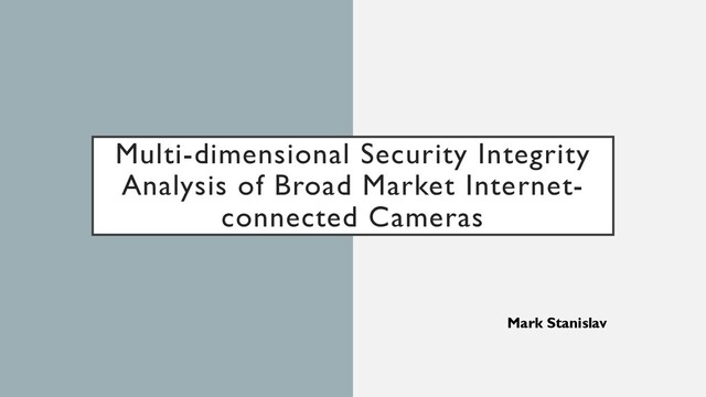 usefulness, but also generally deemed untrustworthy for security, by consumers in the market (Cisco, 2017). With ongoing news stories covering compromised IoT cameras, ranging from baby monitors (Rascon & Aragon, 2018) to doorbells (Whittaker, 2019), trust will be difficult to establish without a holistic approach to securing these powerful devices. While numerous IoT security standards & frameworks have been released (Online Trust Alliance, 2015; IoT Security Foundation, 2016; Cloud Security Alliance, 2019; U.K. Department for Digital, Culture, Media & Sport, 2018), consumers are unaware if that guidance has been realized in the devices of today’s market. Previous research on IoT camera security has been too shallow in security control assessment & device sample size (Stanislav & Beardsley, 2015; Alharbi & Aspinall, 2018) and did not reflect industry-published frameworks & standards. 4