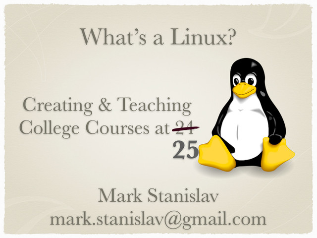 Ever wondered how to get into university teaching or what it's like once you jump in? How about if you no older than any of your students? Mark will explore his experiences with teaching at Eastern Michigan University and ITT Technical Institute, going through everything from how to break into teaching, to what it's like to write curriculum, to how to deal with 27 students and 24 computers in your Linux labs. Mark will share not only his opinions and thoughts on the journey, but also give tips to make yours easier.