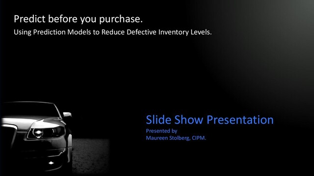 Avoid costly mistakes. Auto dealerships trying to provide the best inventory selection possible can avoid making bad purchases and lower the overall risk of passing on a defective car to their customers resulting in potential savings of $3.1B. $.4B $.7B $1.1B $1.4B $1.8B $2.2B $2.5B $2.9B $3.1B $.0B $.5B $1.0B $1.5B $2.0B $2.5B $3.0B $3.5B 10% 20% 30% 40% 50% 60% 70% 80% 87% MODEL PREDICTION ACCURACY INVENTORY LOSS REDUCTION Inventory Loss Reduction Savings
