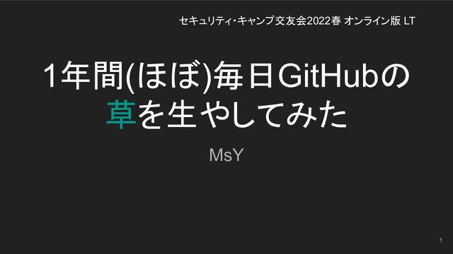 1年間(ほぼ)毎日GitHubの 草を生やしてみた MsY 1 セキュリティ・キャンプ交友会2022春 オンライン版 LT