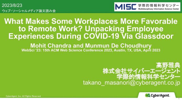Mohit Chandra and Munmun De Choudhury, "What Makes Some Workplaces More Favorable to Remote Work? Unpacking Employee Experiences During COVID-19 Via Glassdoor"