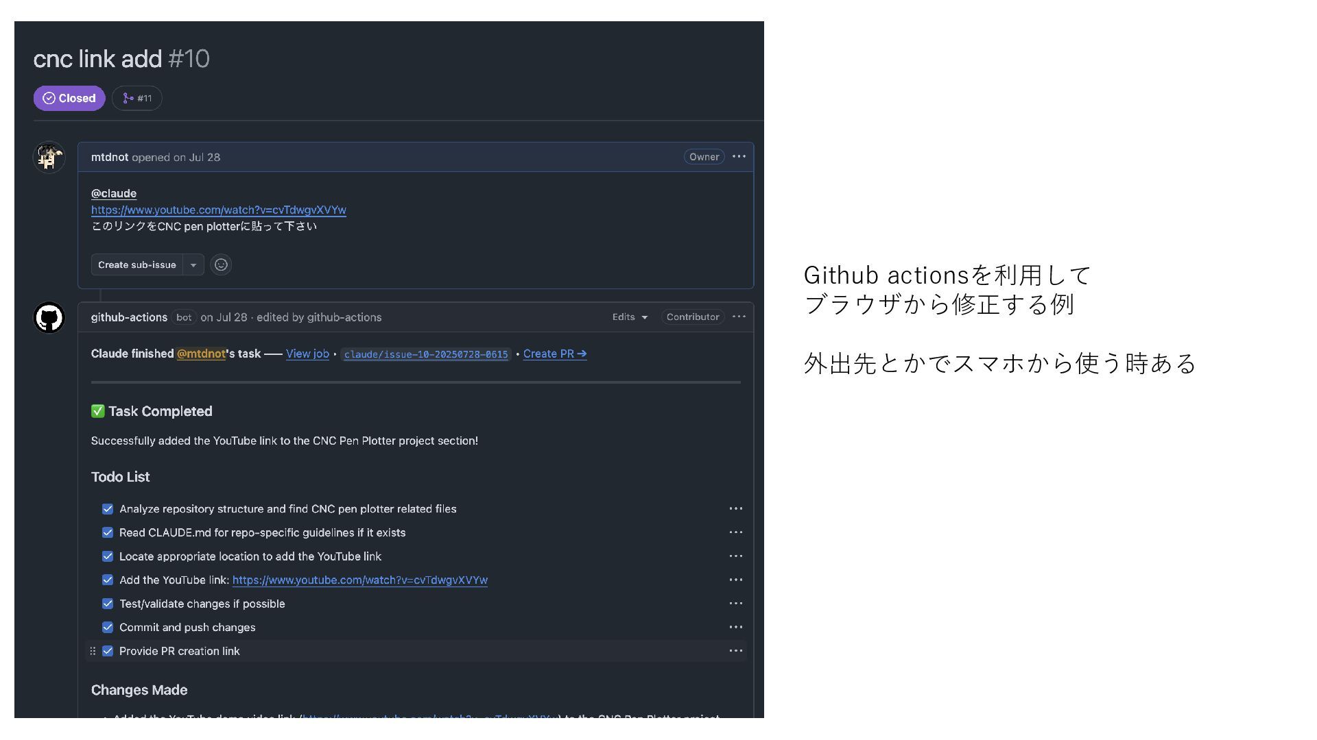 Github actionsを利用して ブラウザから修正する例 外出先とかでスマホから使う時ある