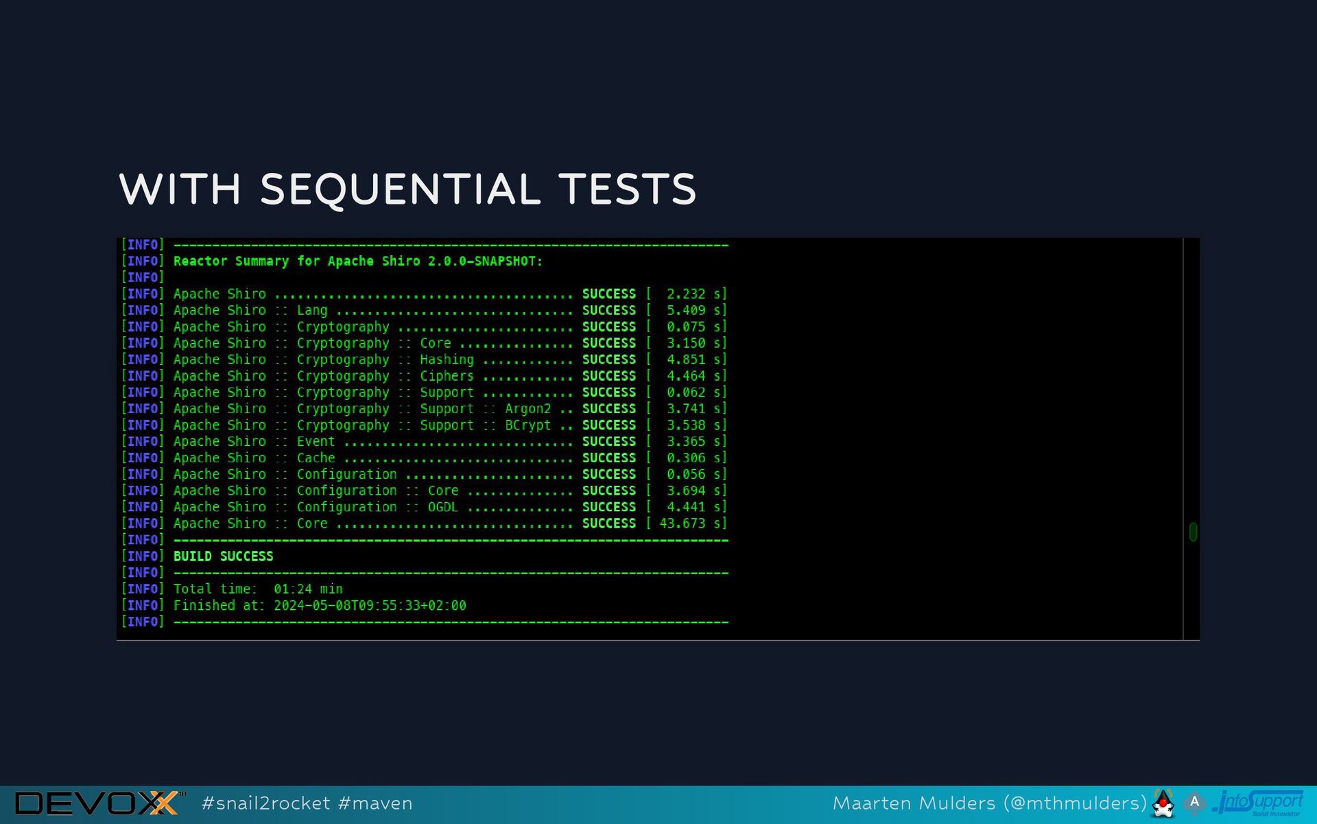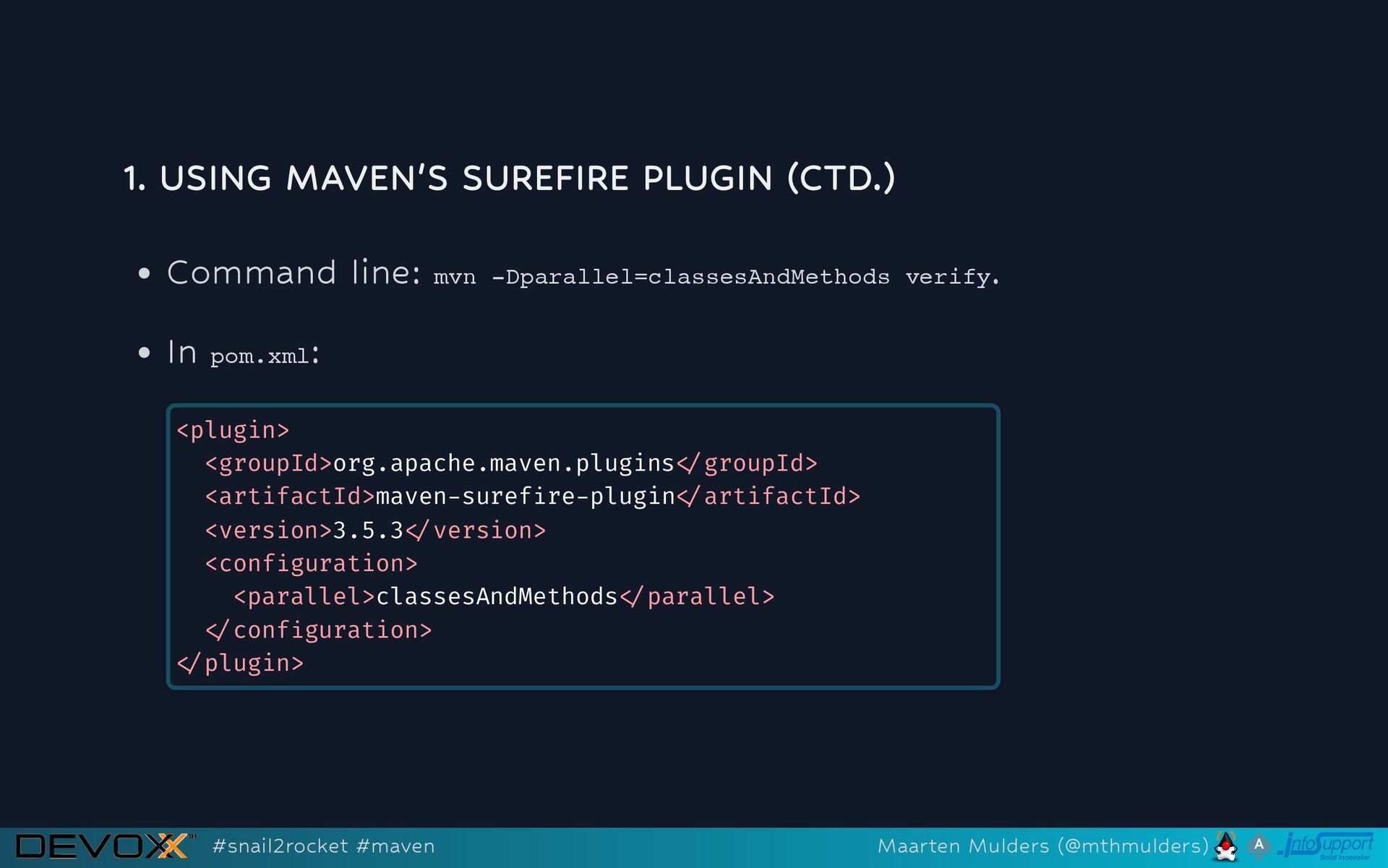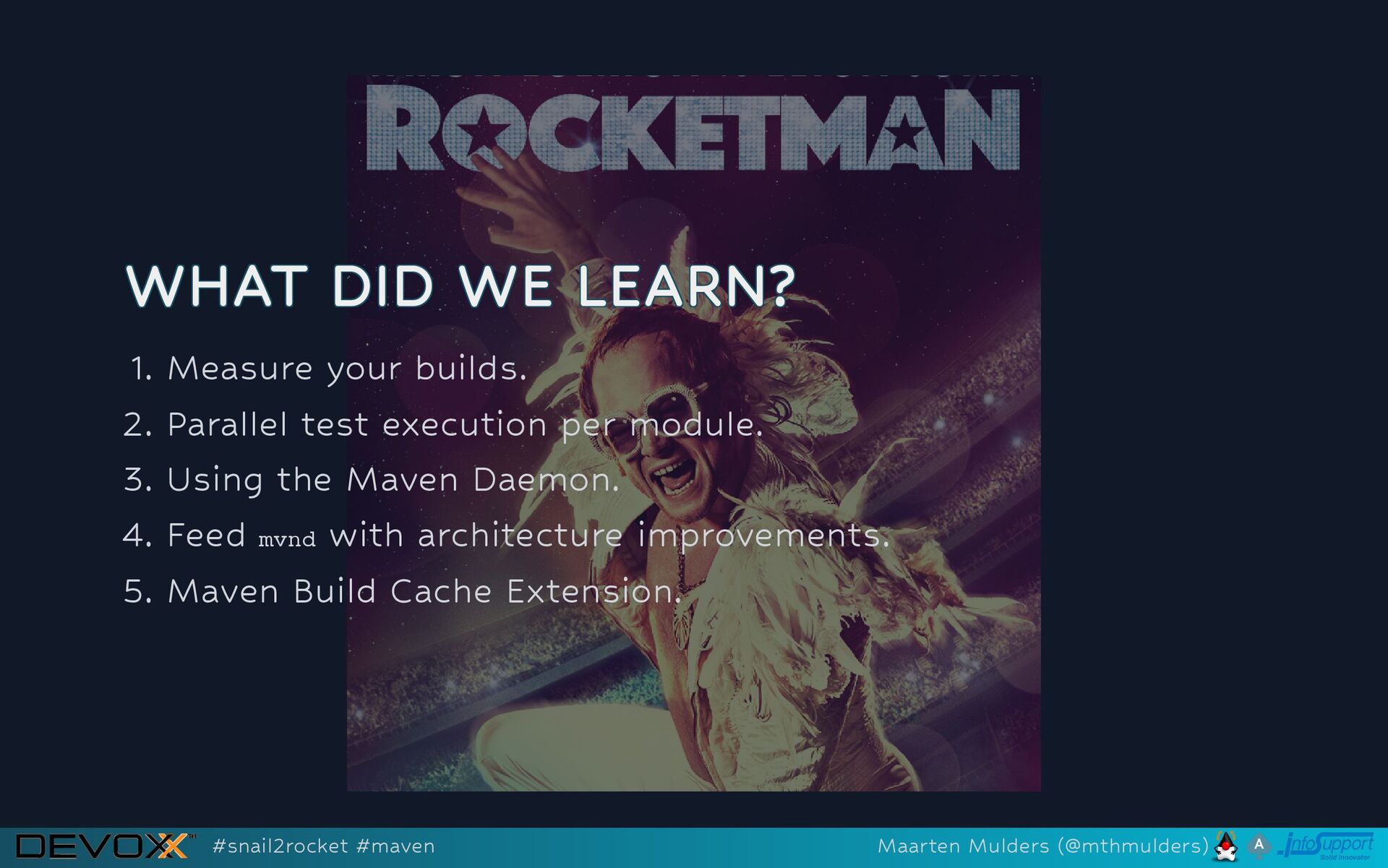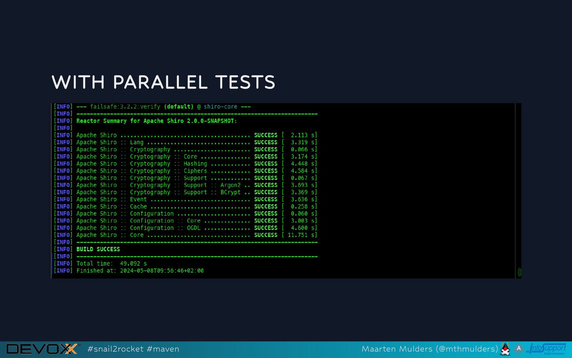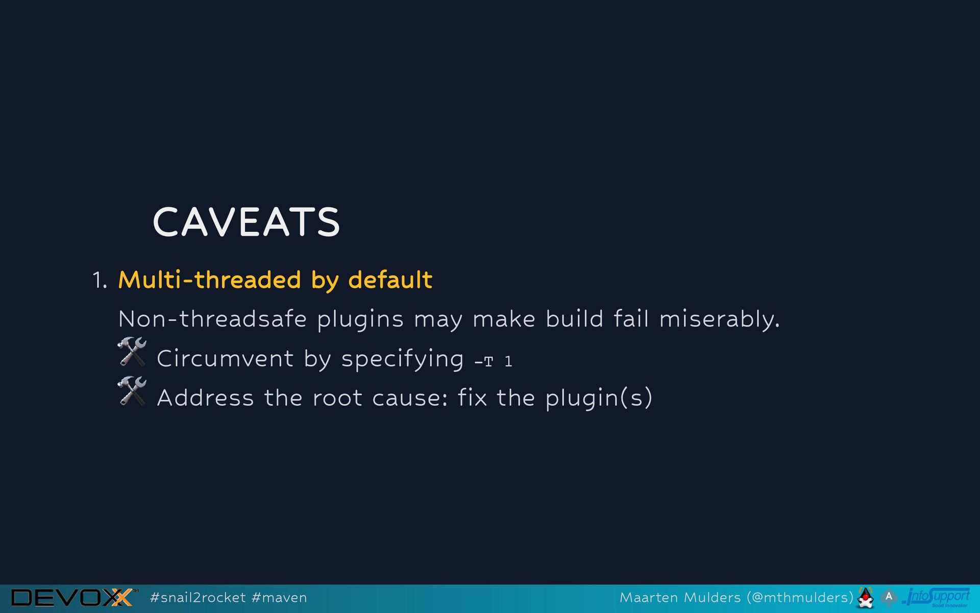 Join me to learn how to supercharge your Maven build! Iโll cover three main steps to start speeding up your project build. Learn how each speeds up your build, when they provide the biggest gains, and what pitfalls await.
