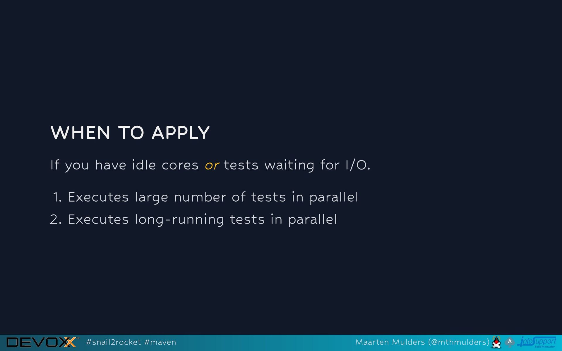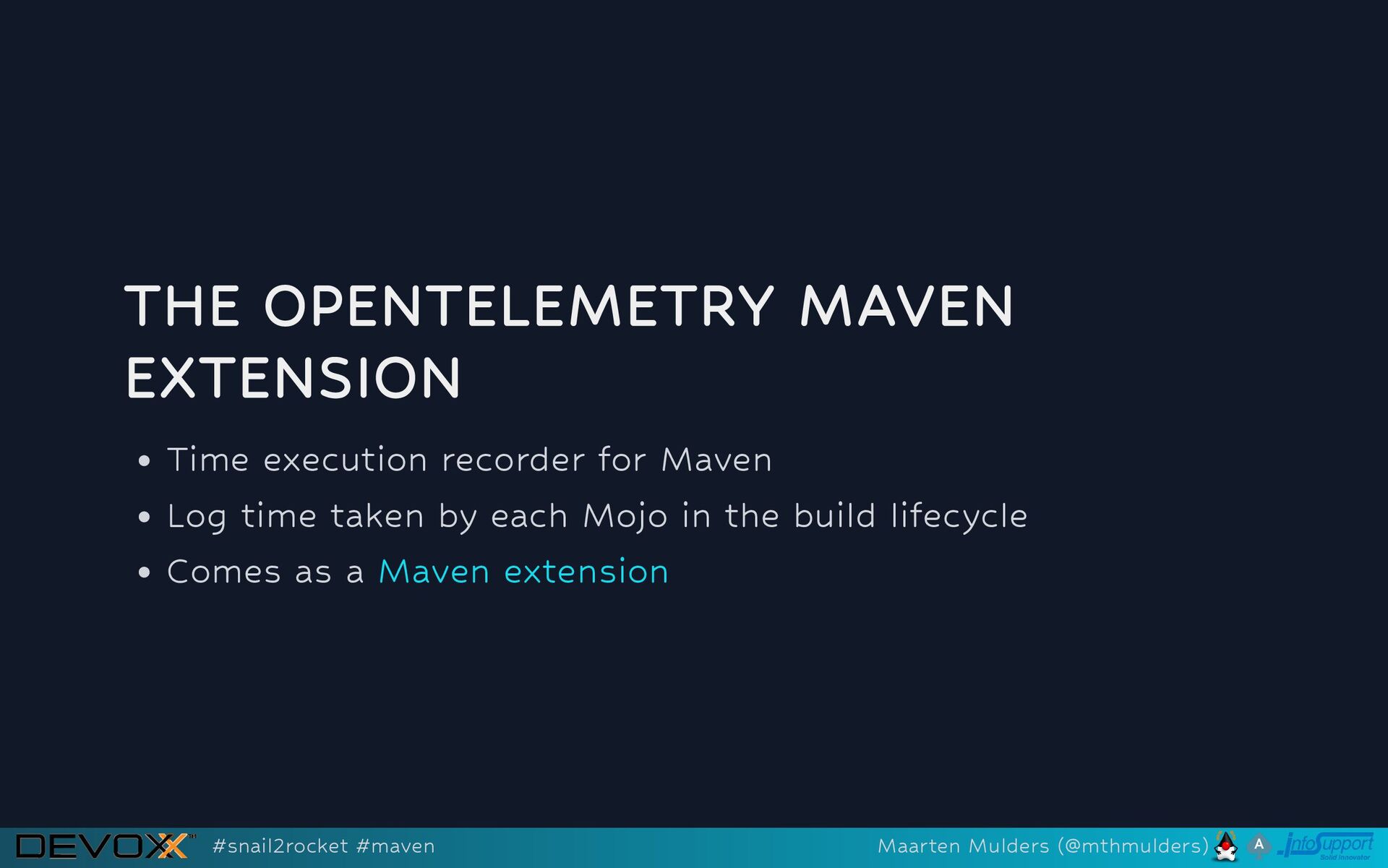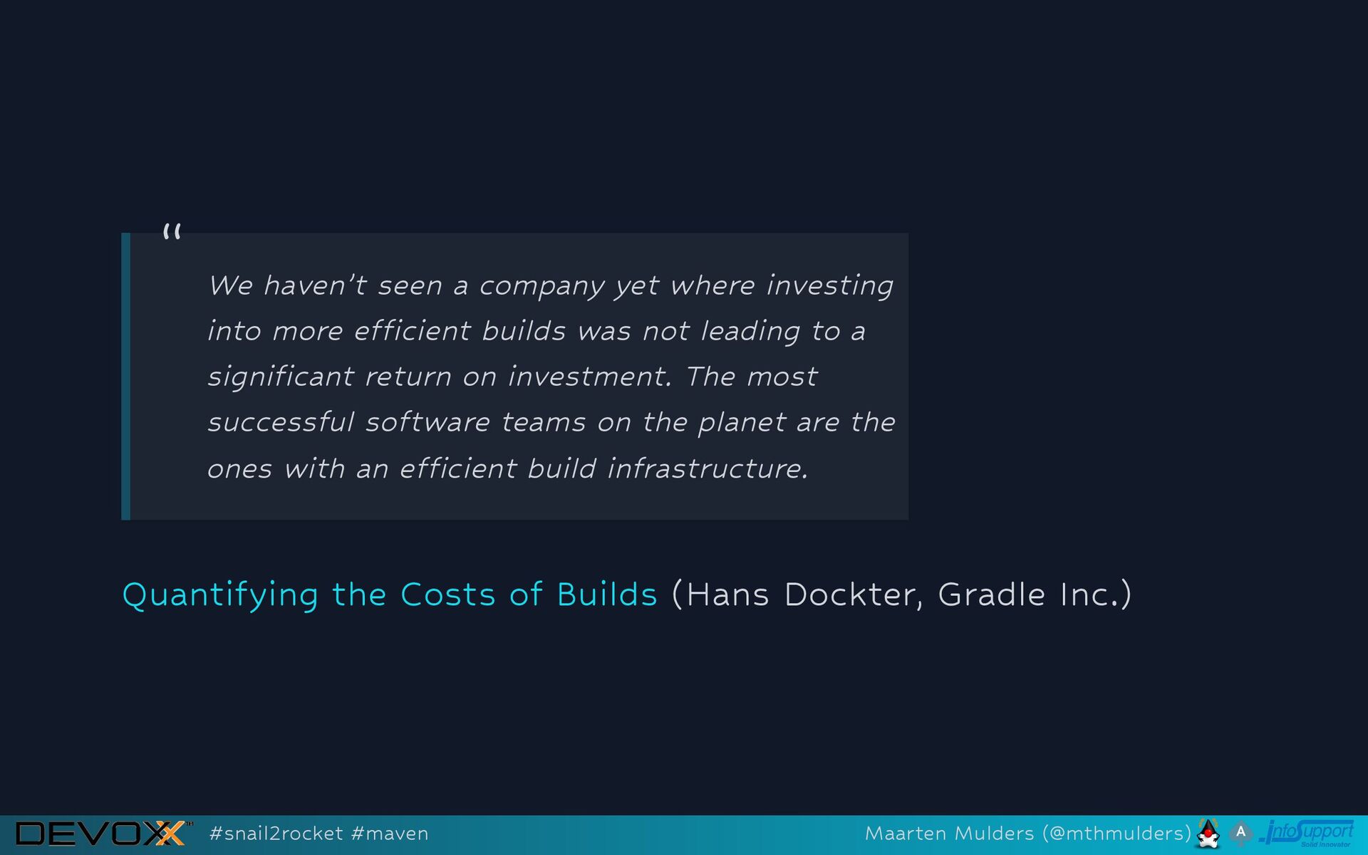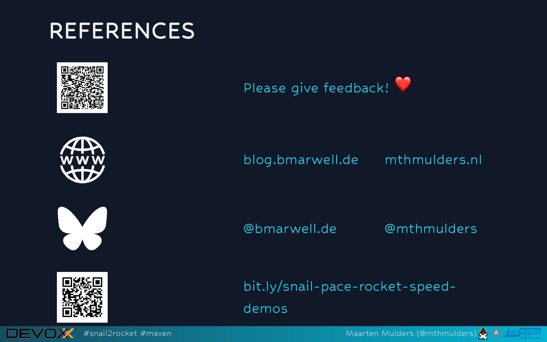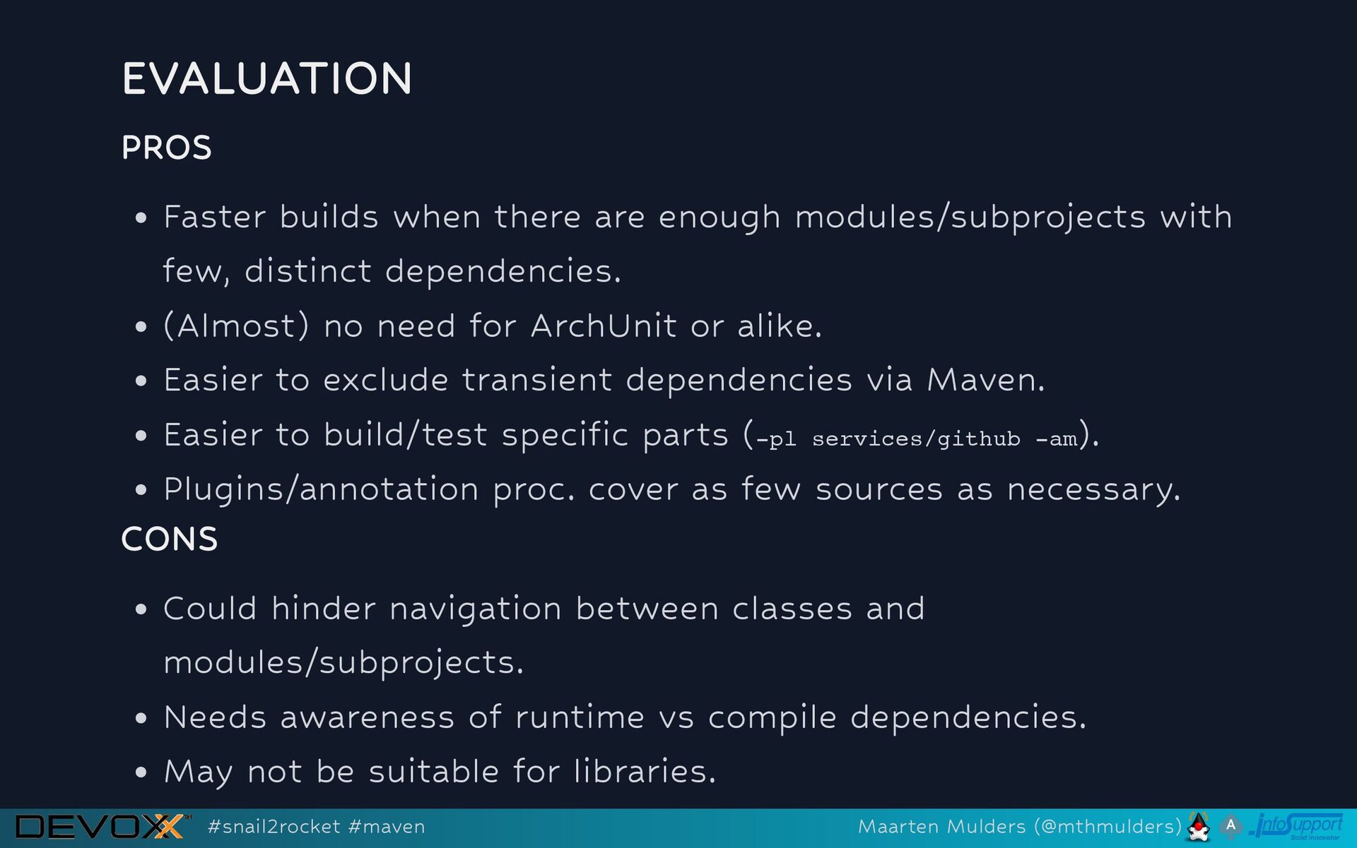 Join me to learn how to supercharge your Maven build! Iโll cover three main steps to start speeding up your project build. Learn how each speeds up your build, when they provide the biggest gains, and what pitfalls await.