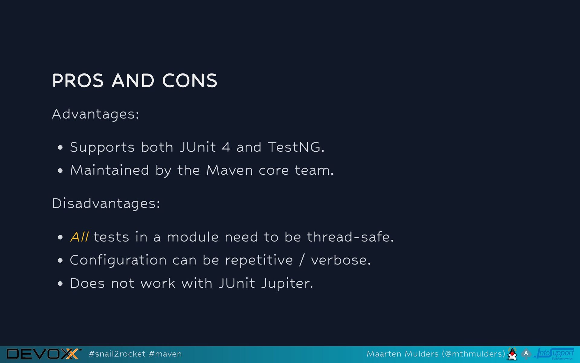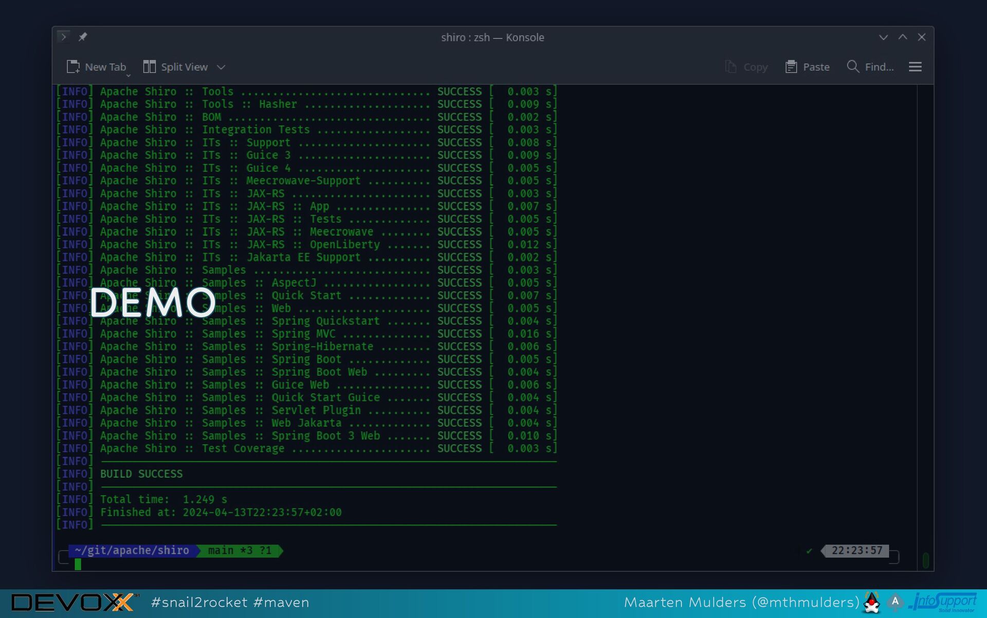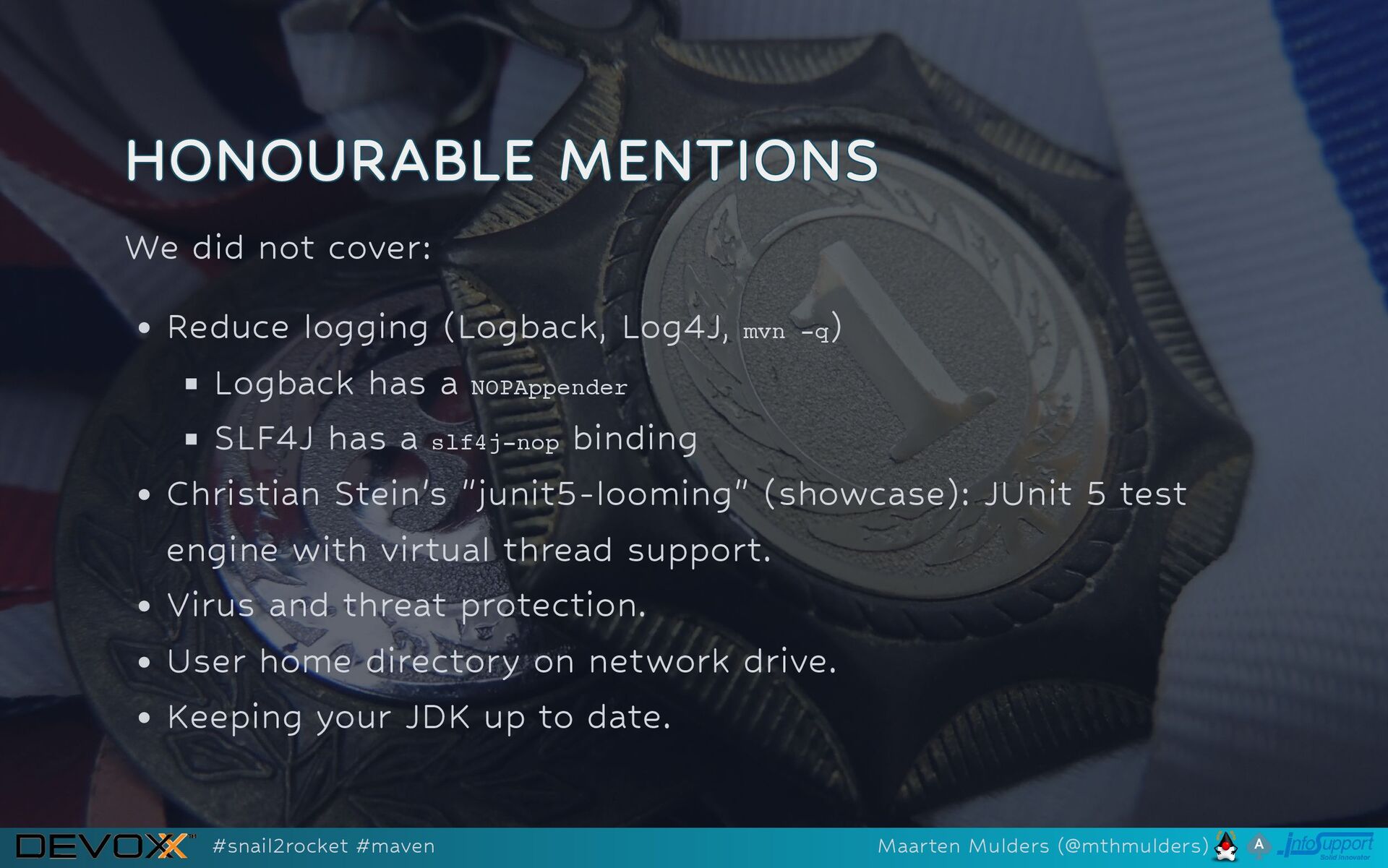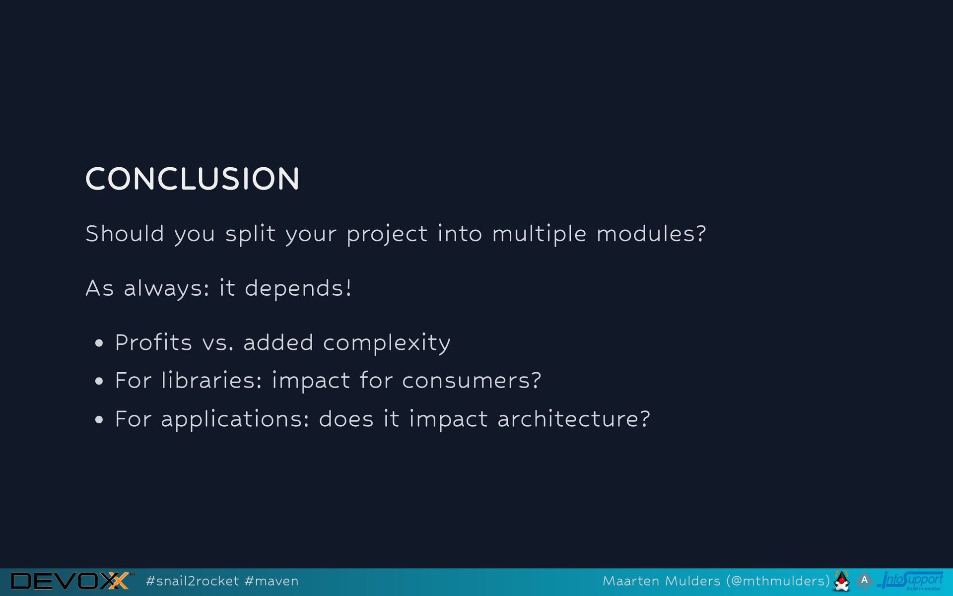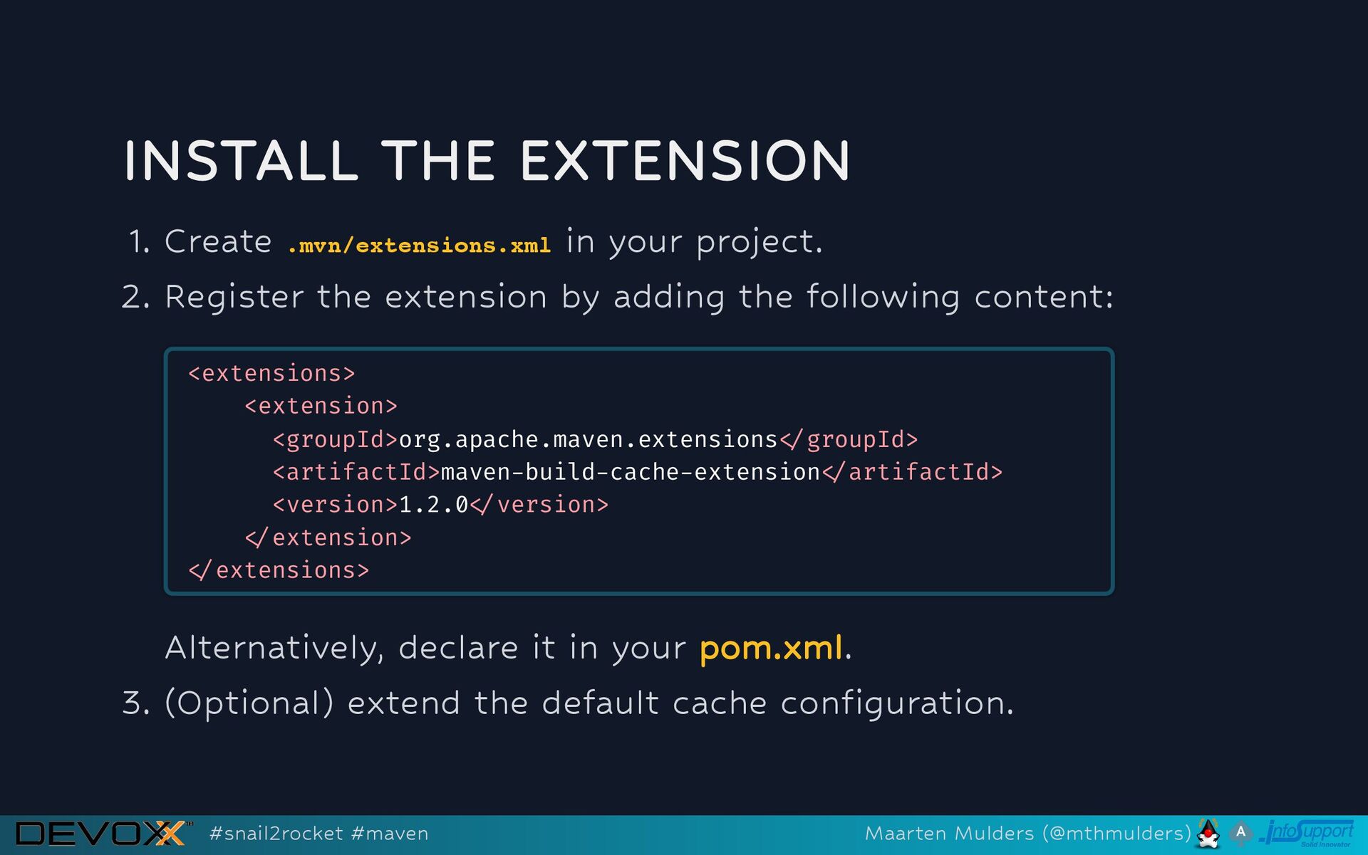 Join me to learn how to supercharge your Maven build! Iโll cover three main steps to start speeding up your project build. Learn how each speeds up your build, when they provide the biggest gains, and what pitfalls await.