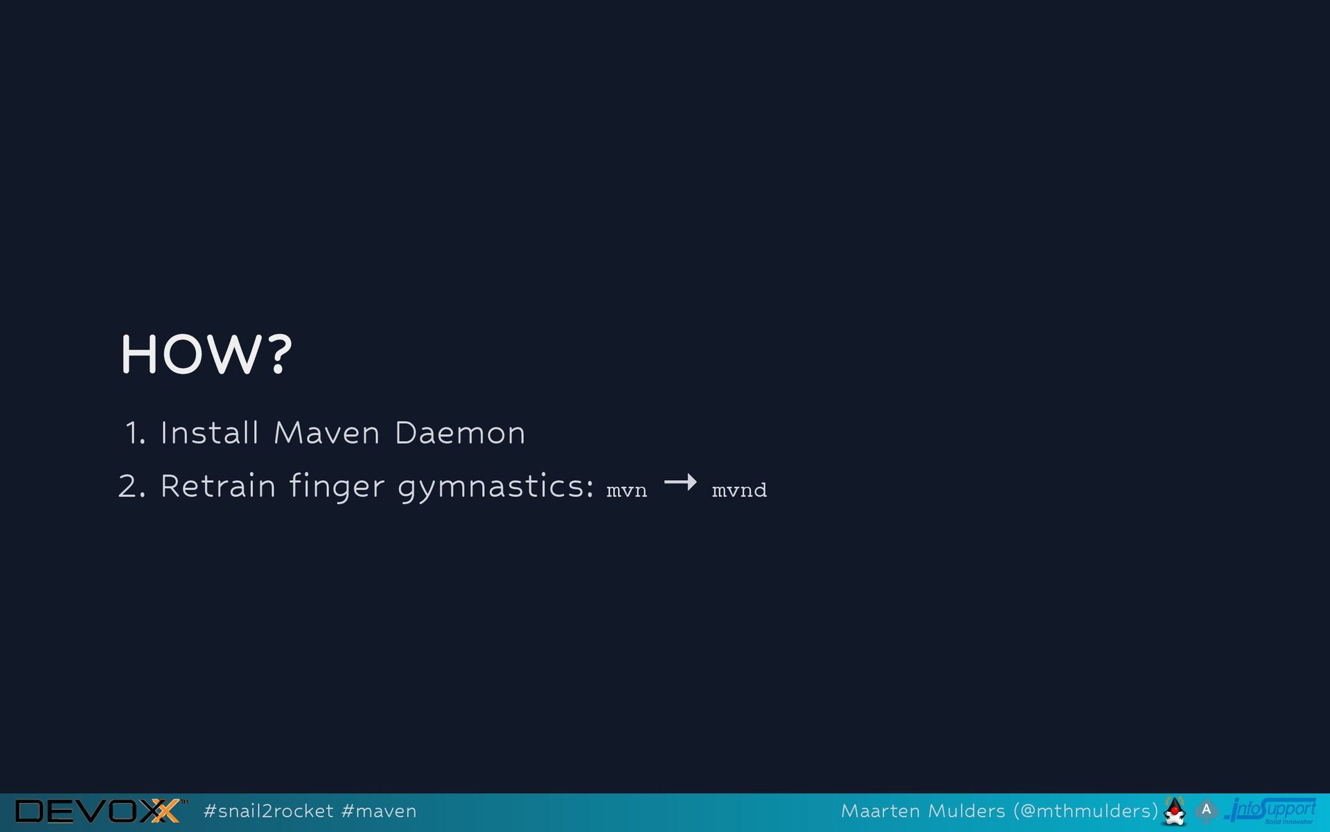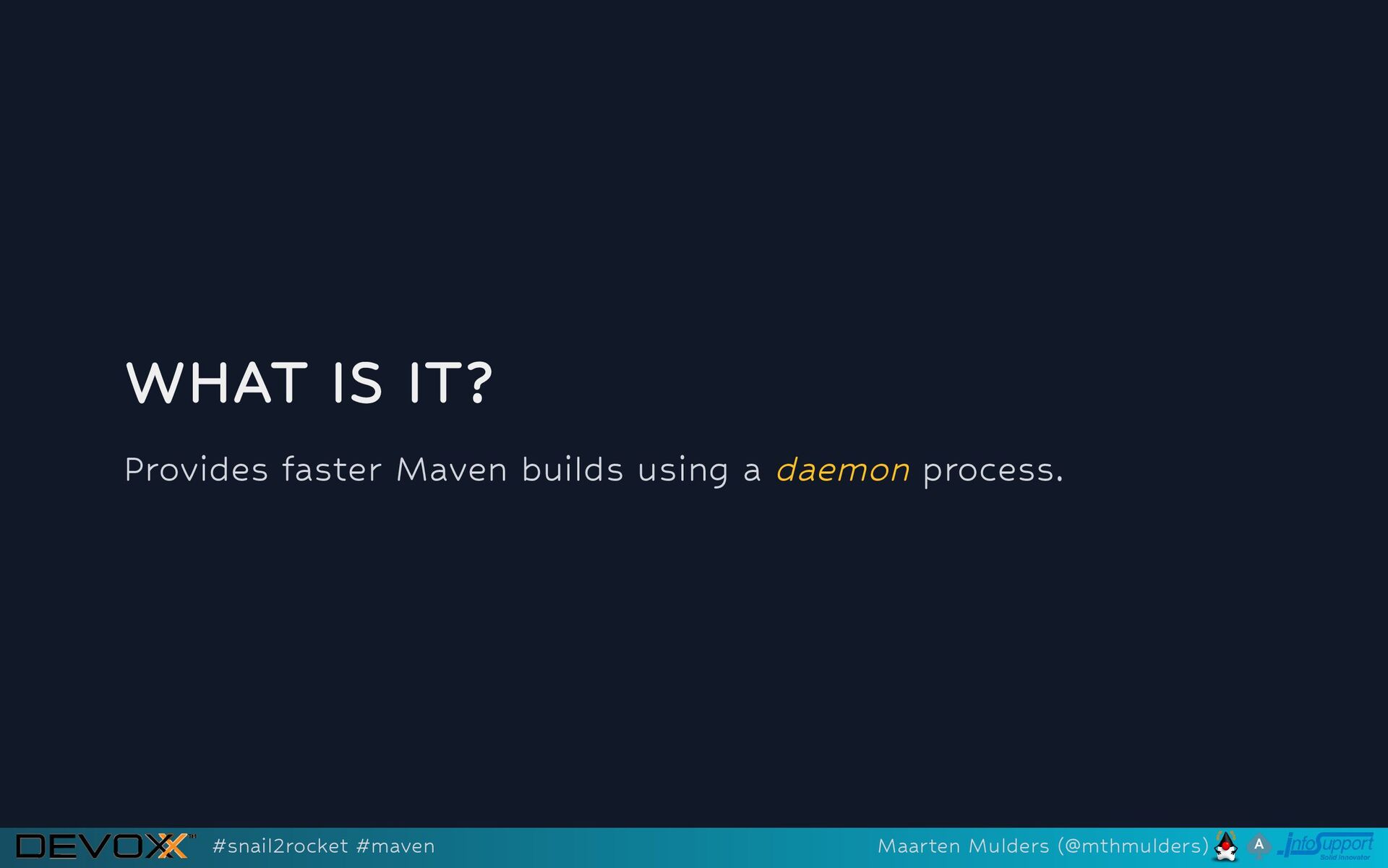 Are you tired of watching Maven builds crawl at a snailโs pace, wasting precious development time? Spending too much time at the coffee machine, or fighting battles with wooden swords under the excuse โmy codeโs compilingโ?