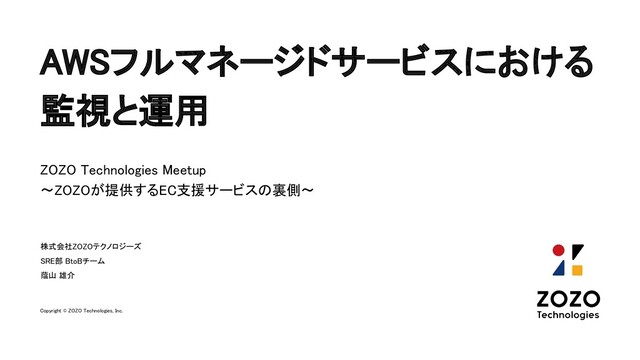 AWSフルマネージドサービスにおける 監視と運用 ZOZO Technologies Meetup 〜ZOZOが提供するEC支援サービスの裏側〜 株式会社ZOZOテクノロジーズ SRE部 BtoBチーム 蔭山