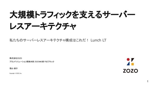 大規模トラフィックを支えるサーバー レスアーキテクチャ 私たちのサーバーレスアーキテクチャ構成はこれだ! Lunch LT 株式会社ZOZO ブランドソリューション開発本部 ZOZOMO部 FBZブロック