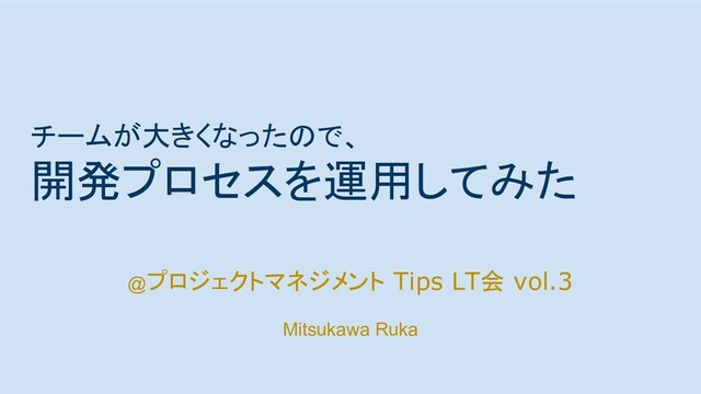 チームが大きくなったので、 開発プロセスを運用してみた @プロジェクトマネジメント Tips LT会 vol.3 Mitsukawa Ruka