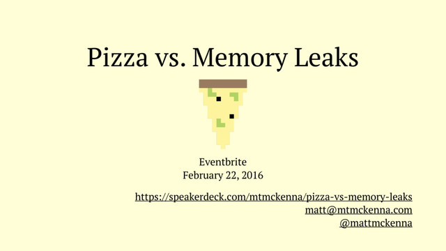 Challenge: https://github.com/mtmckenna/pizza-vs- memory-leaks • More info: https://developers.google.com/web/tools/chrome- devtools/profile/memory-problems/memory-diagnosis • Even more info: https://addyosmani.com/blog/taming-the- unicorn-easing-javascript-memory-profiling-in-devtools/