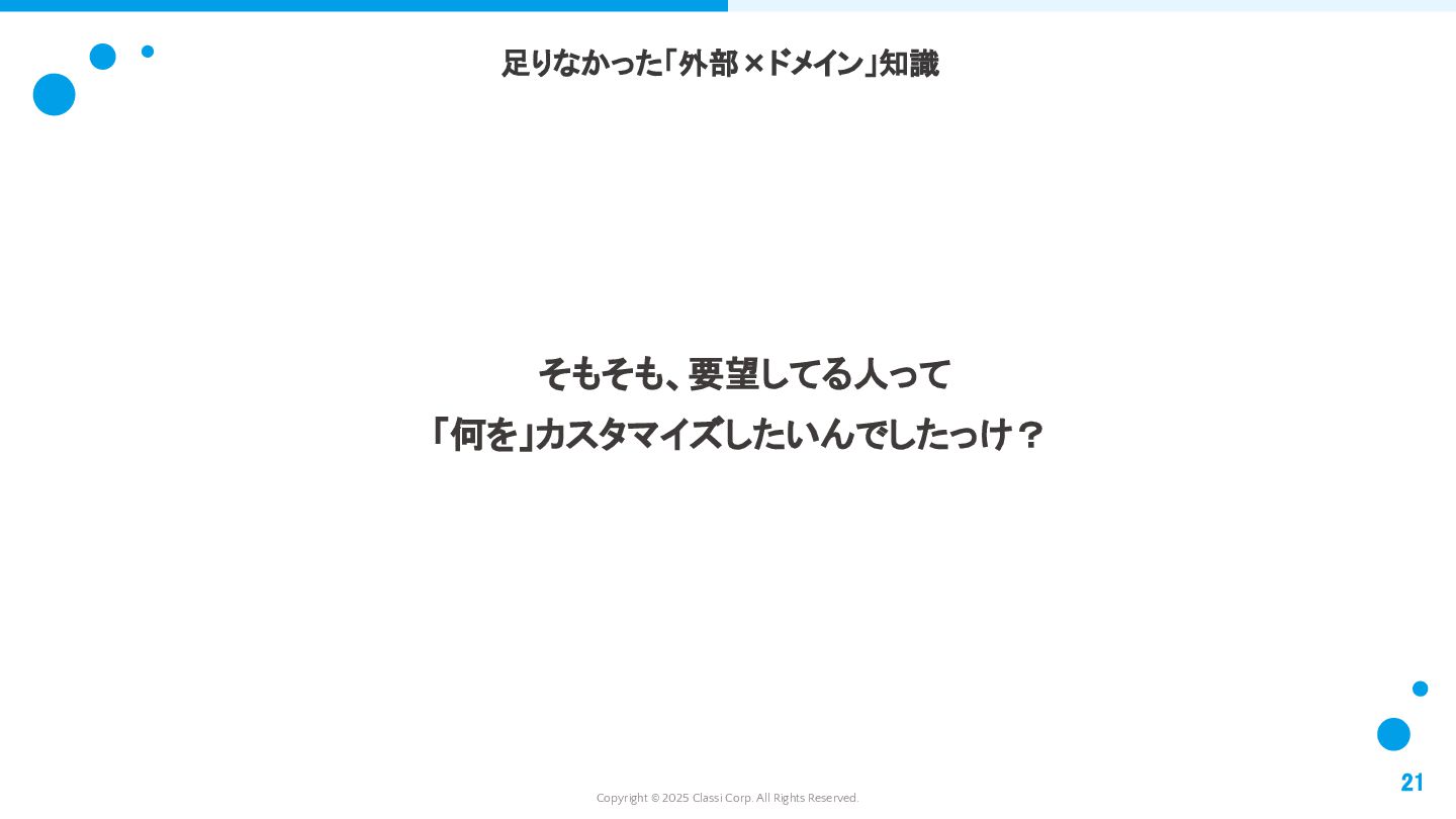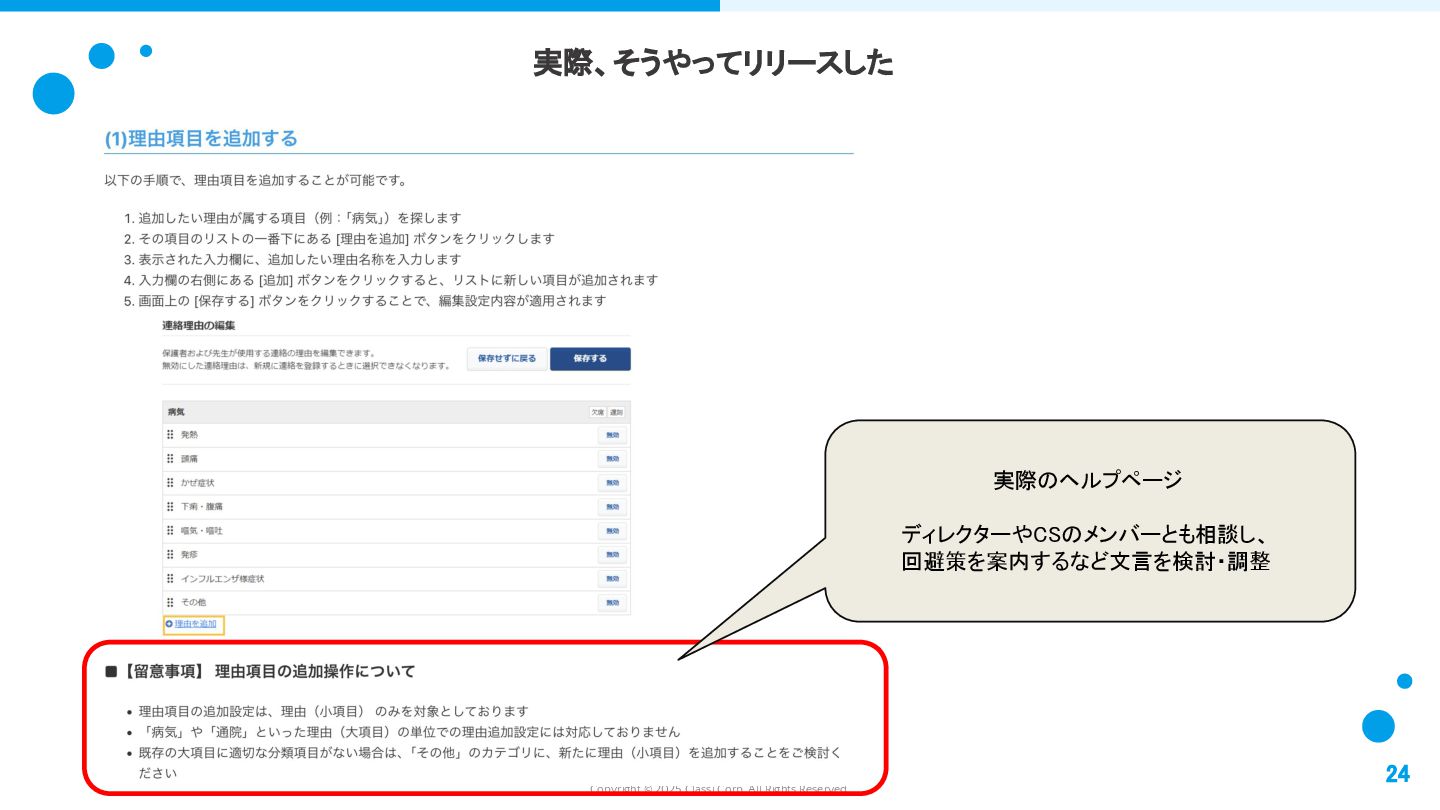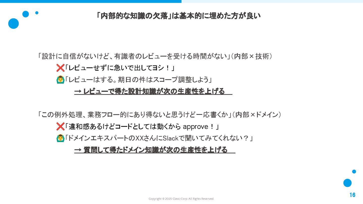 - 内部知識の欠落を放ってリリースしてしまうと、自然には返せない