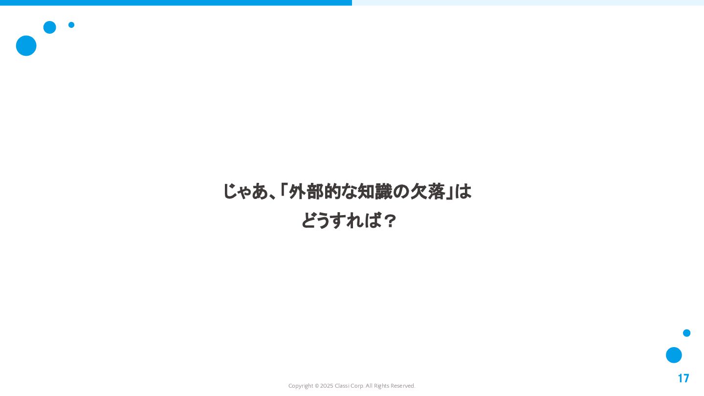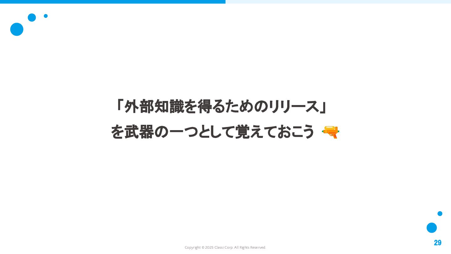 - 「外部知識の欠落」なら、実は リリースすることによって埋める こともできる