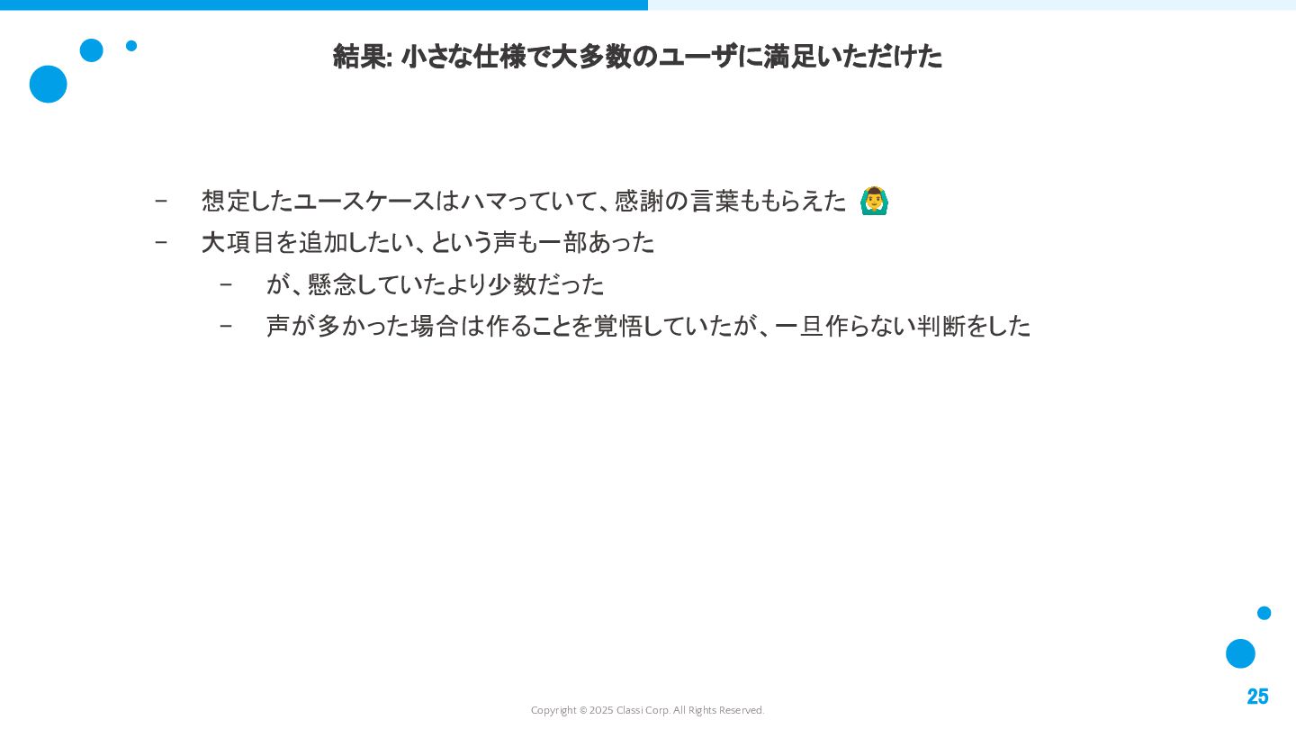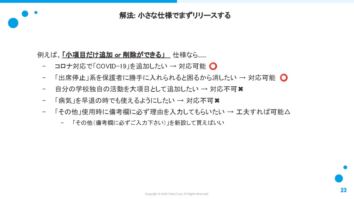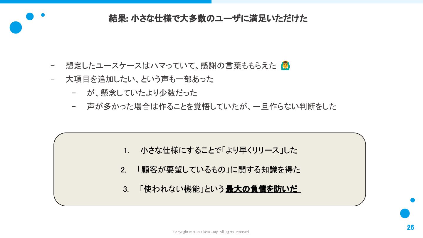 - 得られた知識によって、必要に応じてまた改修をすれば良い