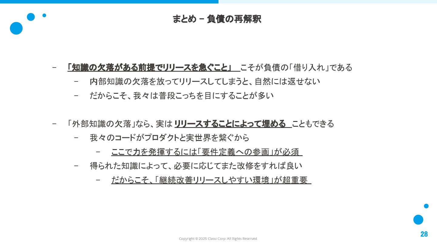 - 「知識の欠落がある前提でリリースを急ぐこと」 こそが負債の「借り入れ」である