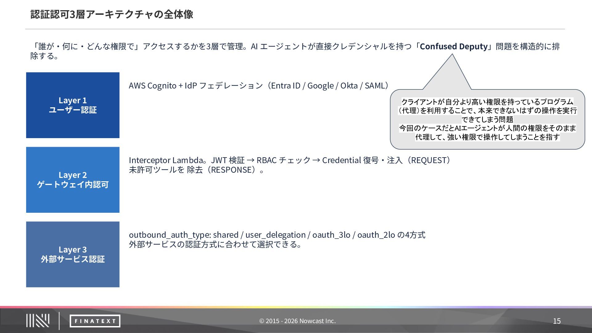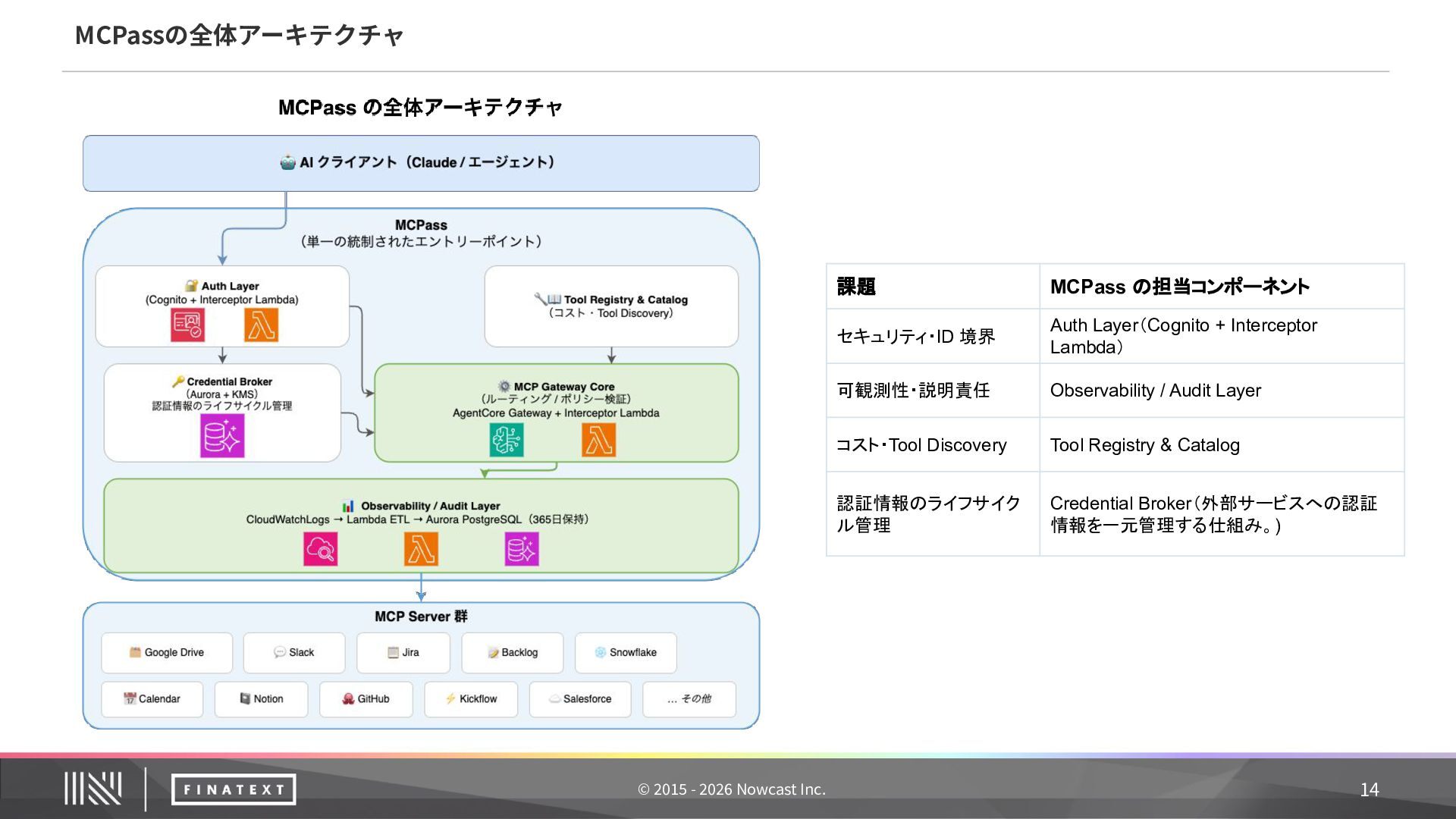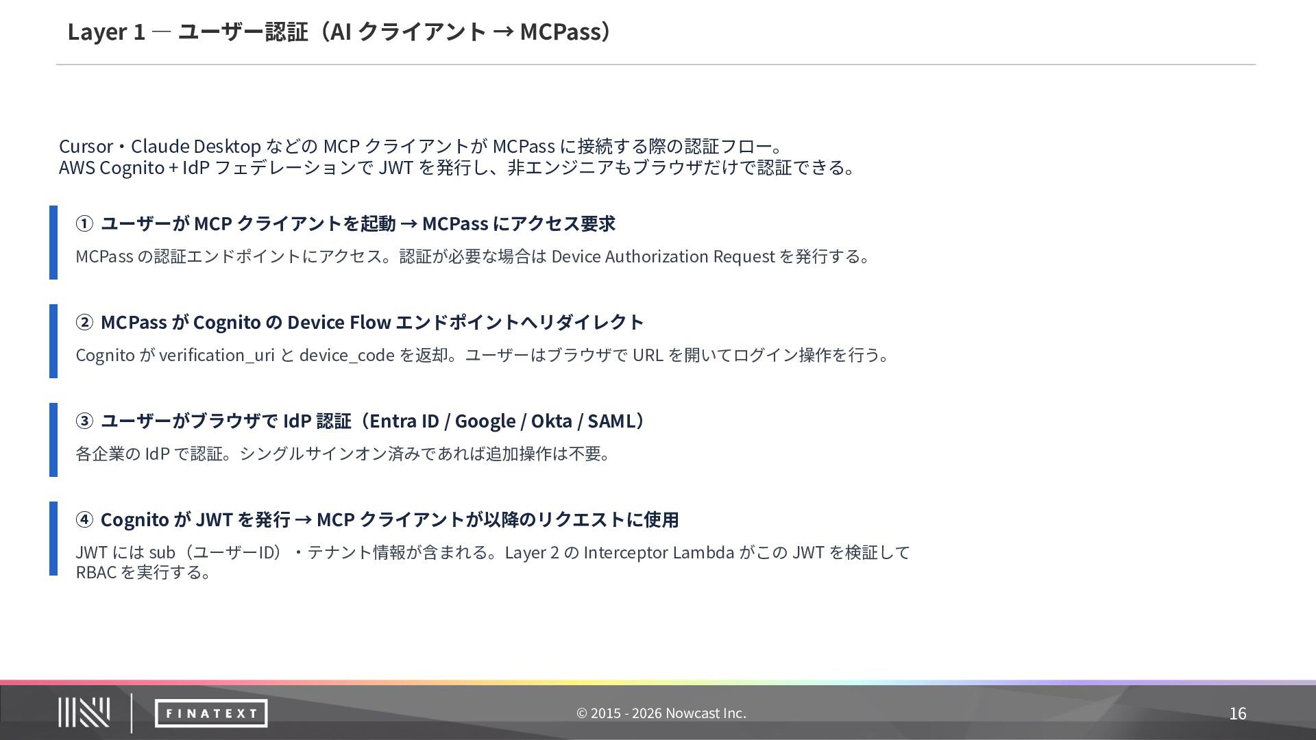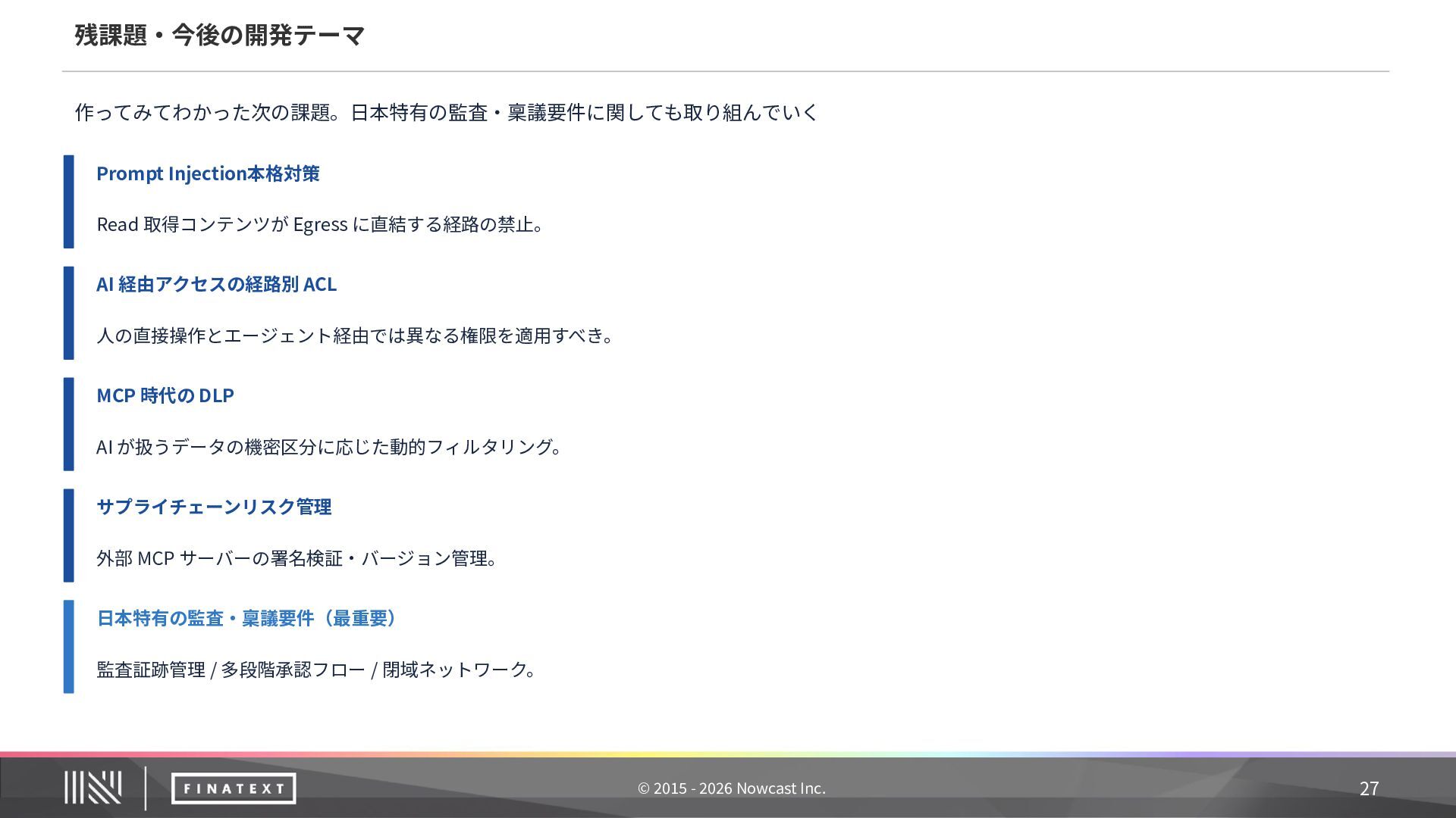 Protocol(MCP)は、AIアシスタントと外部システムを安全に接続するための標準規格です。Anthropic社 が策定し、Linux Foundation で標準化が進められています。 AIと業務システムを安全につなぐためのオープン標準プロトコル (Anthropic 策定‧Linux Foundation で標準化)