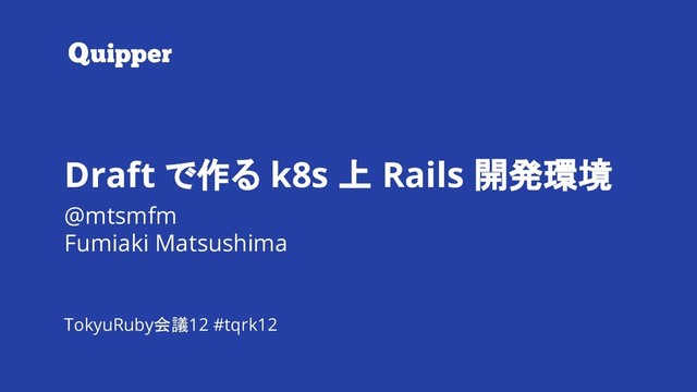at Quipper ➔ Ruby と麻雀と DbD が好き ➔ 西日暮里.rb 主催 ➔ GraphQL Tokyo 主催 @mtsmfm.inspect #tqrk12 Draft で作る k8s 上 Rails 開発環境
