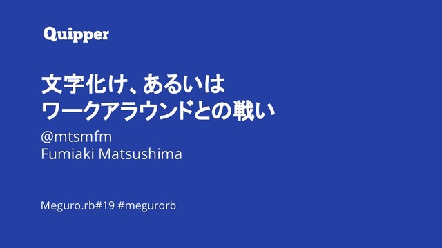 #megurorb 文字化け、あるいはワークアラウンドとの戦い 文字化け、あるいは ワークアラウンドとの戦い @mtsmfm Fumiaki Matsushima Meguro.rb#19 #megurorb