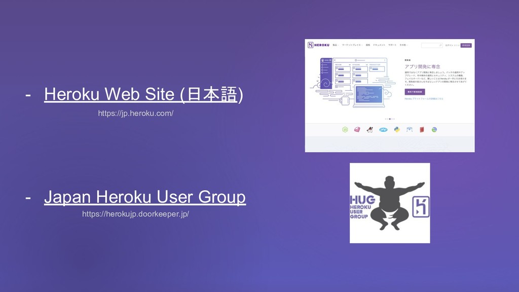 https://jp.heroku.com/ https://herokujp.doorkeeper.jp/