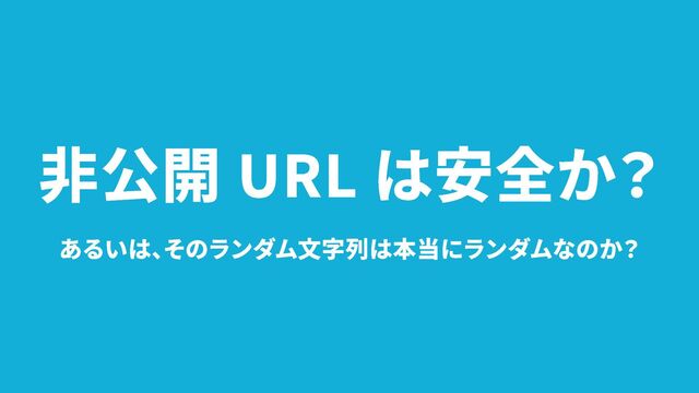 非公開 URL の特徴 - *URL さえ知っていれば*誰でもアクセスできる - でも URL を*類推することは難しい*(と、されている) - なので、*認証はなくても限定公開*を実現できている