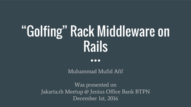 before hitting application - Rack Middlewares are universal: It should be plug and play to any Rack-based app, not limited to Rails - (Yes yes. As long as the middleware is not tightly-coupled to Rails) - All demo code available on https://github.com/mufid/rack-talk