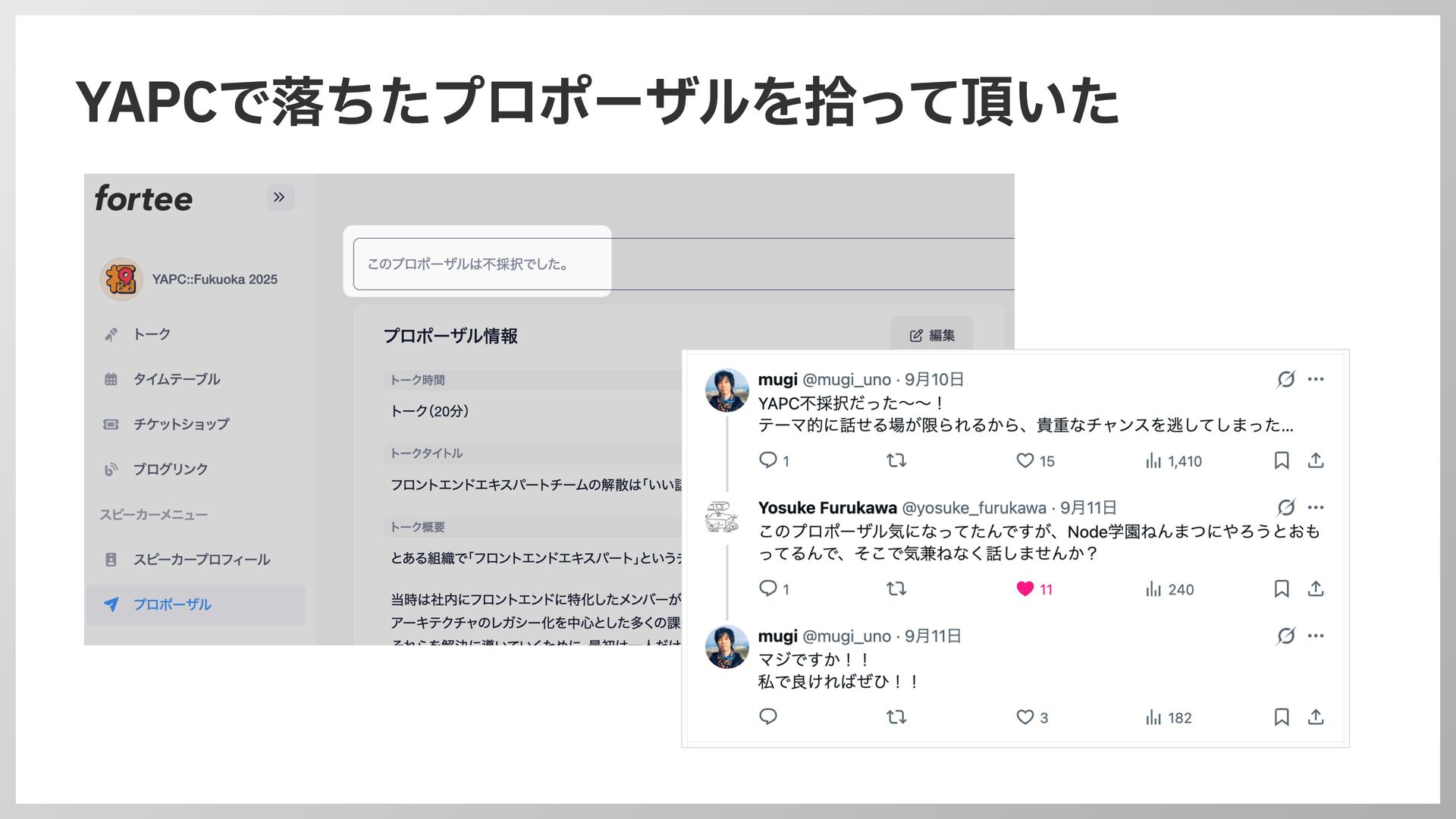 YAPCで落ちたプロポーザルを拾って頂いた
