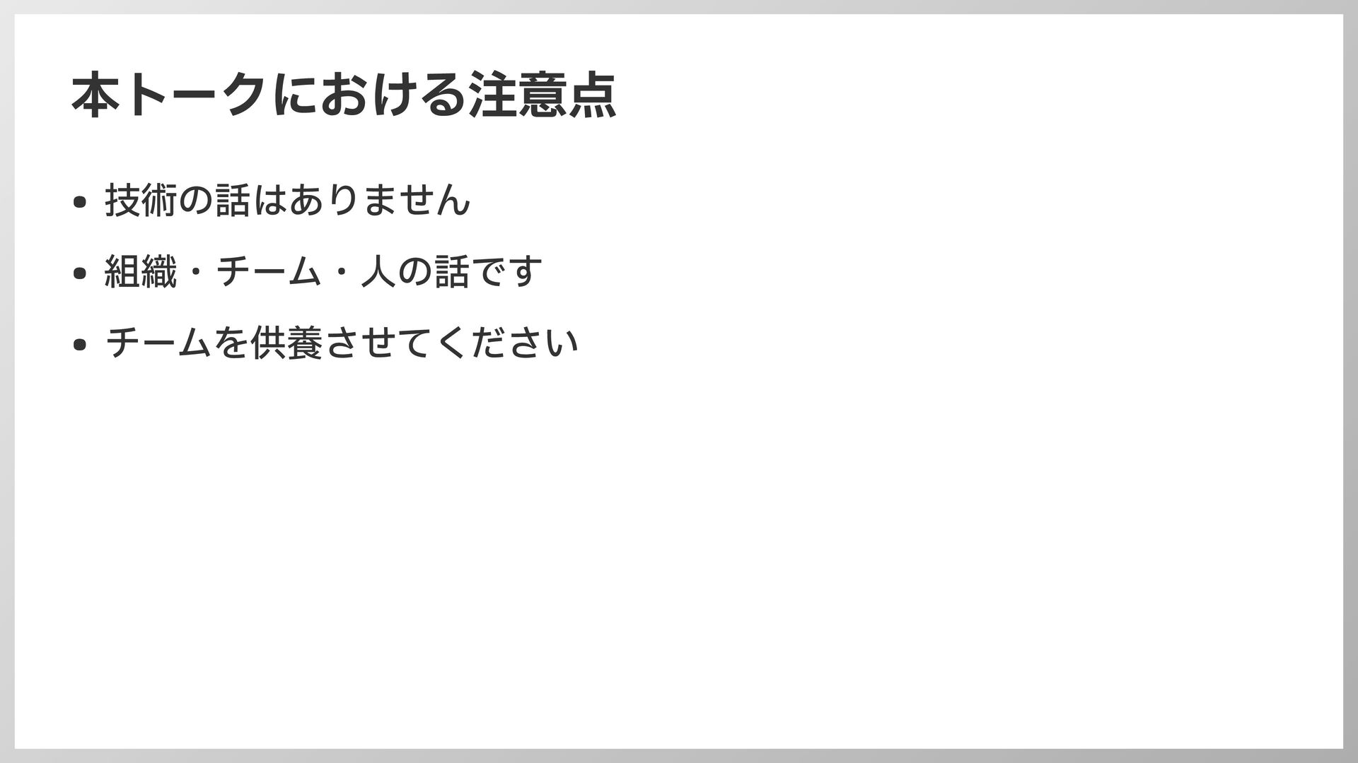 本トークにおける注意点 • 技術の話はありません • 組織・チーム・ 人 の話です • チームを供養させてください