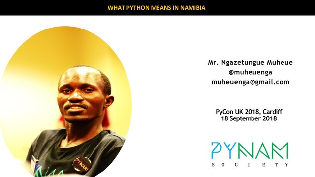 attendees • …from 12 different countries • 15 PyNam Scholars • 13 workshops • Django Girls • 21 talks • 16 sponsors • …including 5 Namibian sponsors • about one half of our attendees and one third of our speakers were women PYCON NAMIBIA 2018 IN NUMBERS