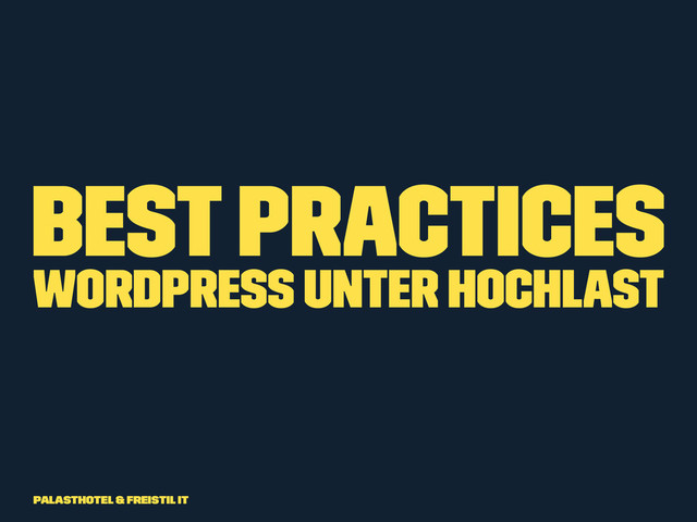 Schreiben » Echtzeit-Analytics Daten Lösung: » Datenbank optimieren » Object caching nicht in der DB » Suche durch Apache Solr oder Elastic Search ersetzen » Entkoppeln der Schreibzufriffe (Analytics durch Javascript einbinden) Palasthotel & freistil IT
