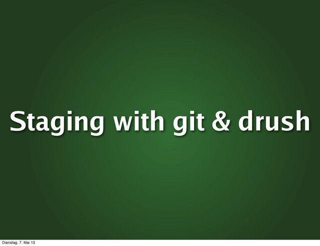 history • teamwork • deployment to docroot on the server • put as much in code as possible • features, strongarm, install profiles, … • hook_update_N summary Dienstag, 7. Mai 13