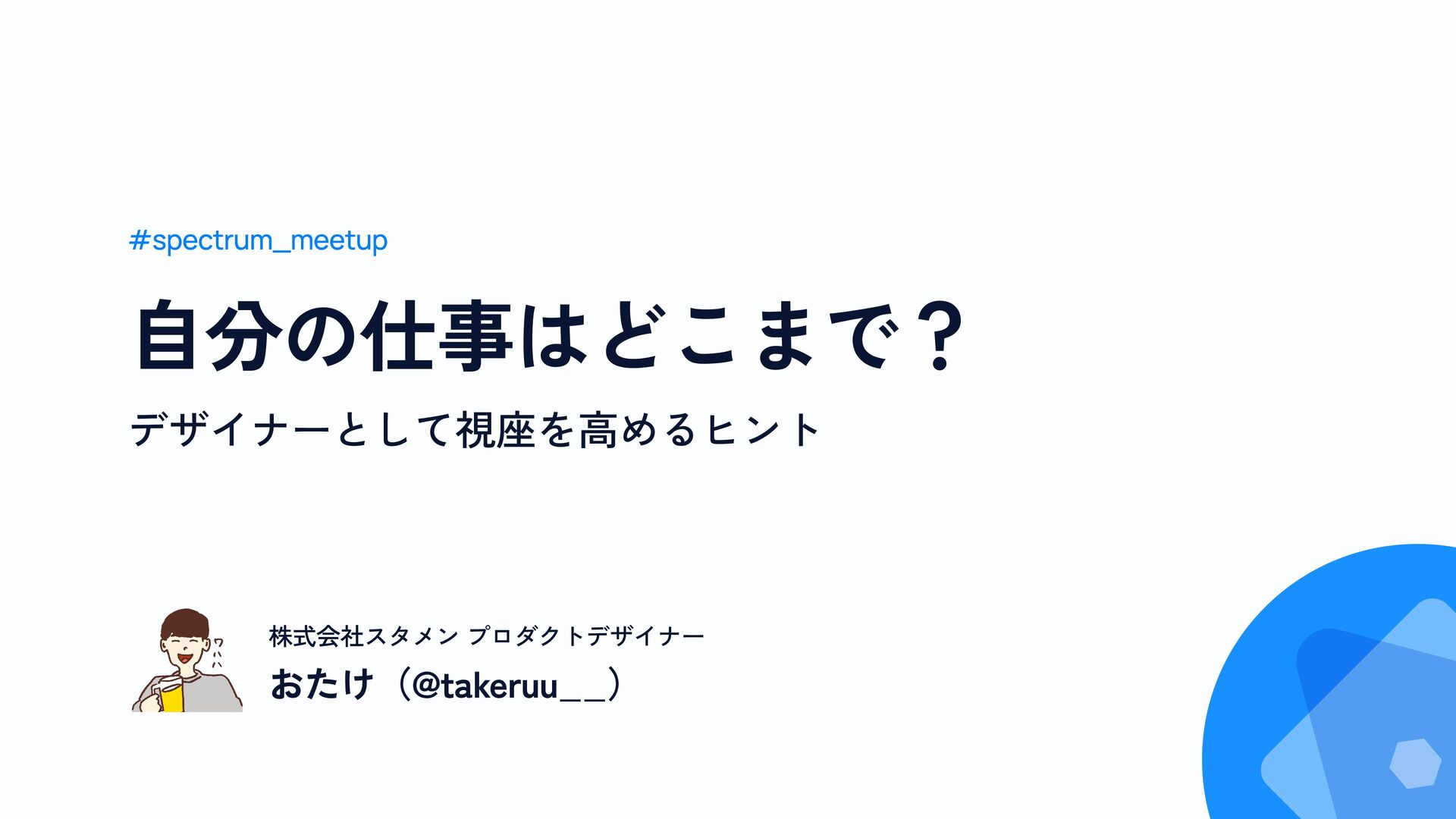 #spectrum_meetup 自分の仕事はどこまで? デザイナーとして視座を高めるヒント 株式会社スタメン プロダクトデザイナー おたけ(@takeruu__)