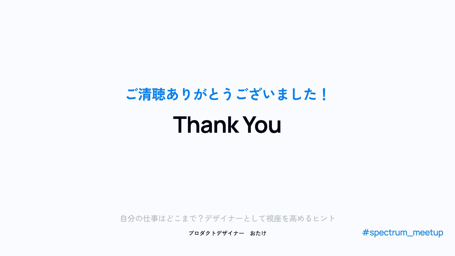 Thank You プロダクトデザイナー おたけ ご清聴ありがとうございました! #spectrum_meetup