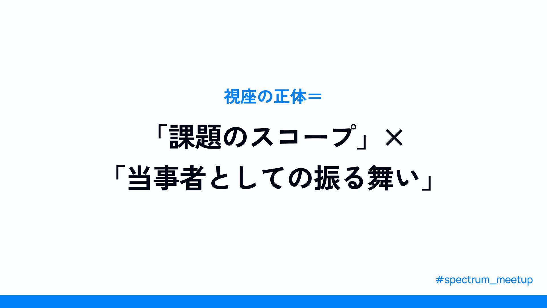 視座の正体= 「課題のスコープ」× 「当事者としての振る舞い」 #spectrum_meetup